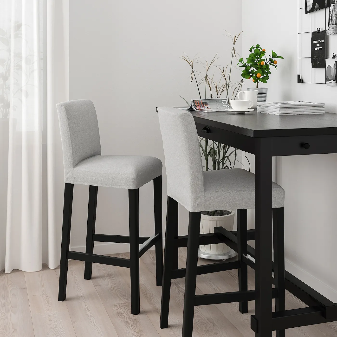 Барные стулья серии BERGMUND обеспечивают мягкость и комфорт, а также большое количество чехлов, как этот, выполненный в светло-сером оттенке. После приятных обедов и веселых бесед приятно знать, что этот чехол можно легко постирать.