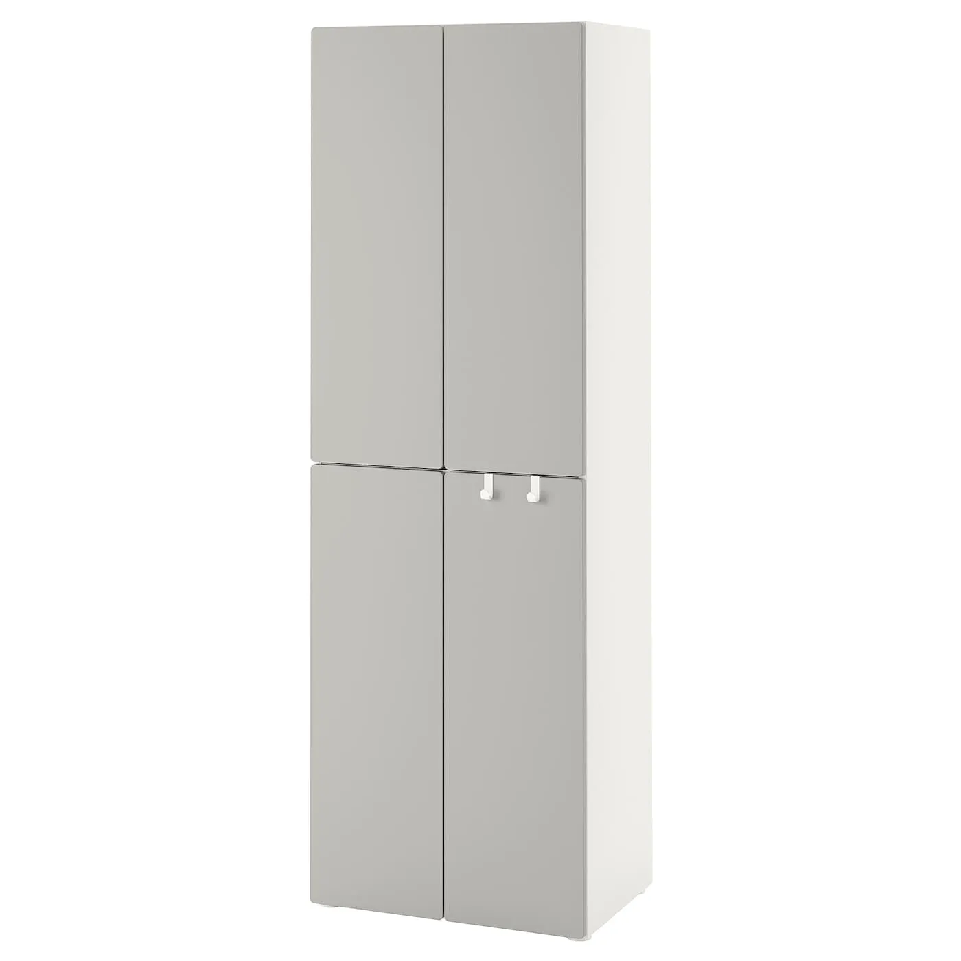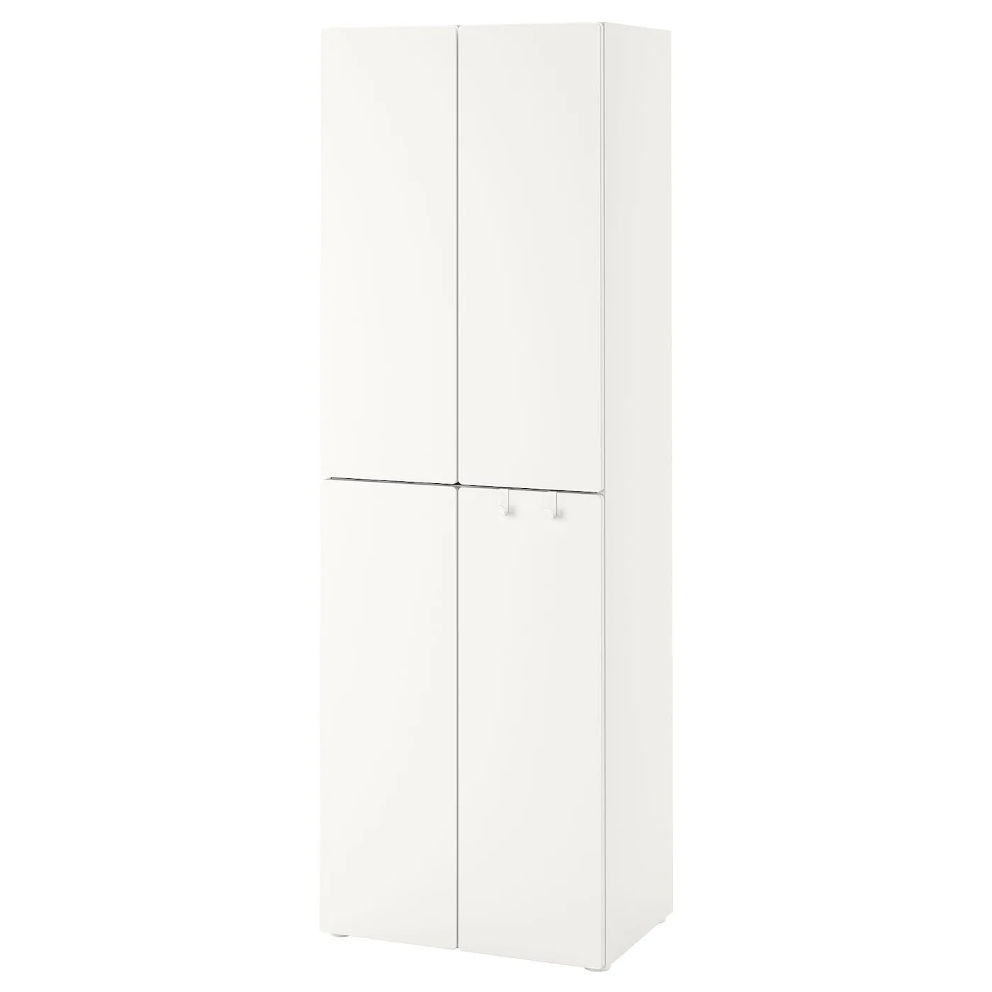 Этот шкаф вместителен даже на небольшой площади – от детских ползунков до подростковых джинсов. На рейлингах удобно разместить вешалки, а на крючках ребенок сможет самостоятельно вешать одежду.