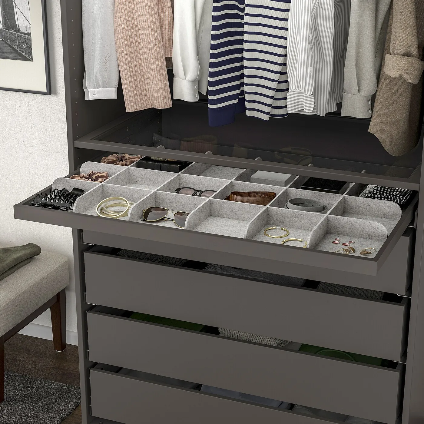 Разделитель помогает организовать хранение мелких предметов, таких как шарфы, пояса и галстуки, делая их легкодоступными.