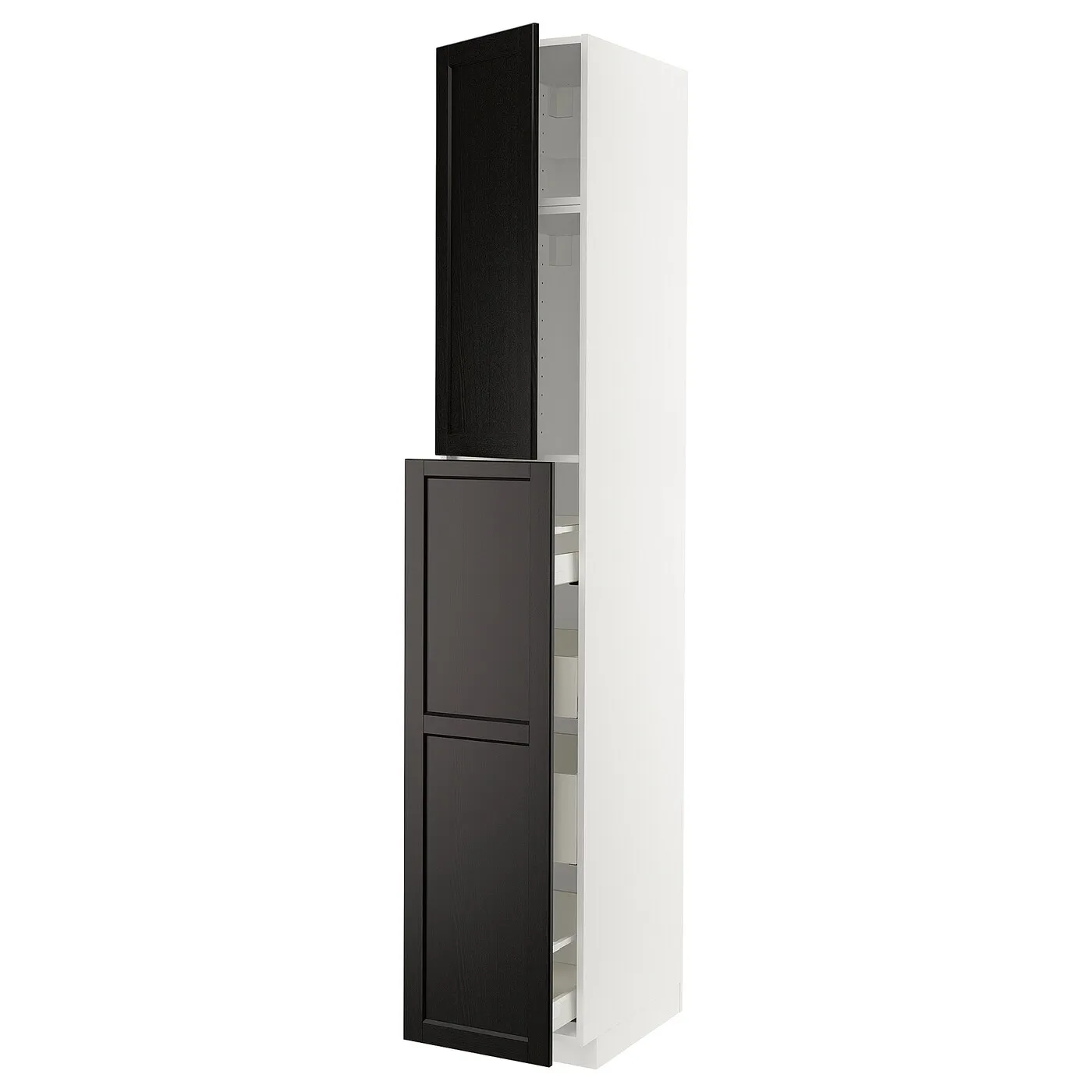 Кухонная система METOD предлагает бесконечные возможности для создания вашей идеальной кухни. С фасадами Лерхыттан с черной морилкой и скошенными краями ваша кухня обретает теплый и традиционный вид.
