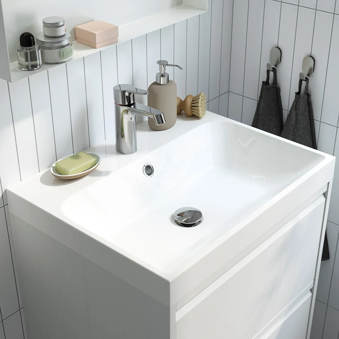 Мебель для ванной ÄNGSJÖN обладает современным дизайном с минималистичными деталями, позволяя начинать каждый день с чистого листа. Комплект включает 2 вместительных ящика и умывальник с четкими линиями для создания стильного вида.
