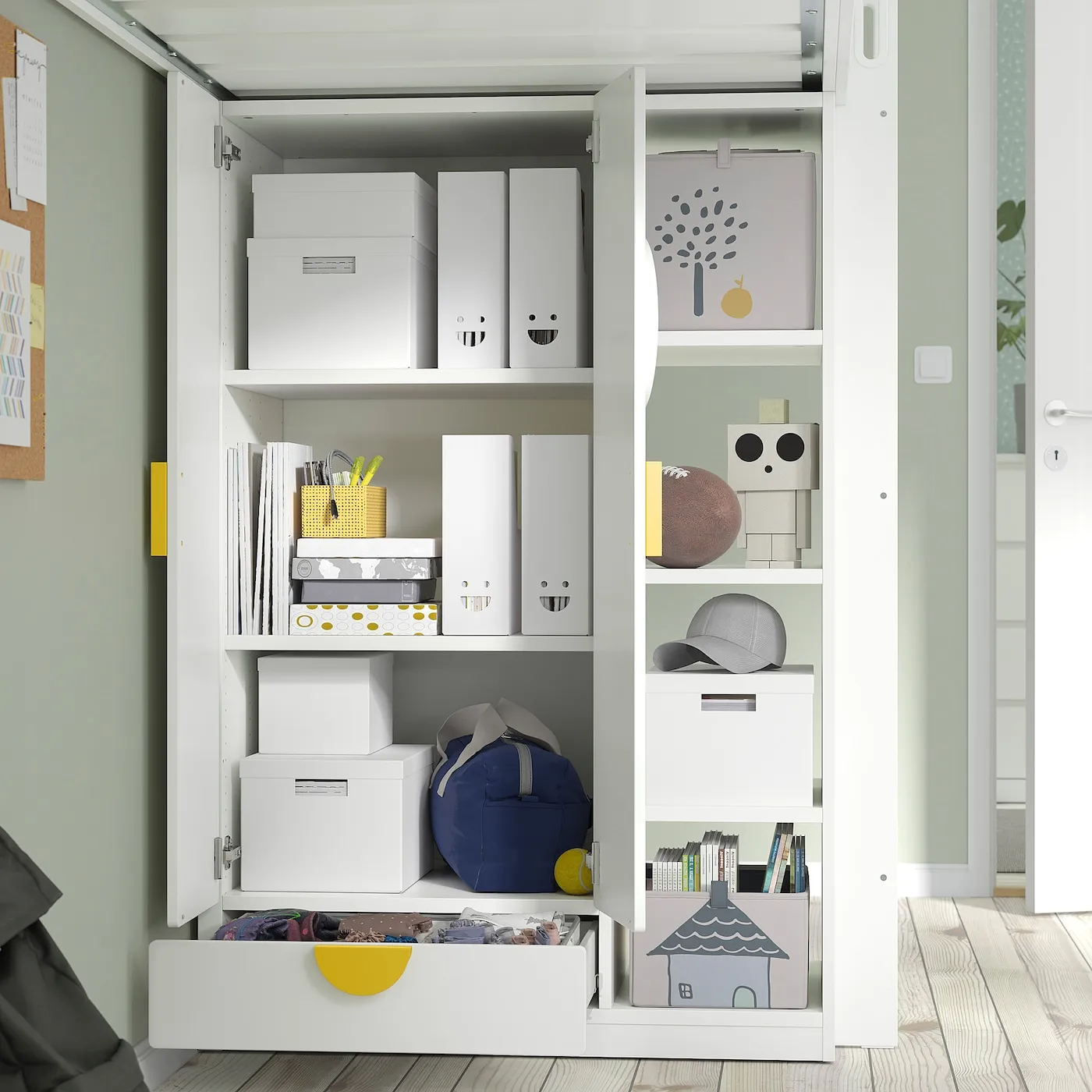 Можно дополнить одной из наших коробок из Детской ИКЕА для организации внутреннего пространства или открытых полок. Продается отдельно.