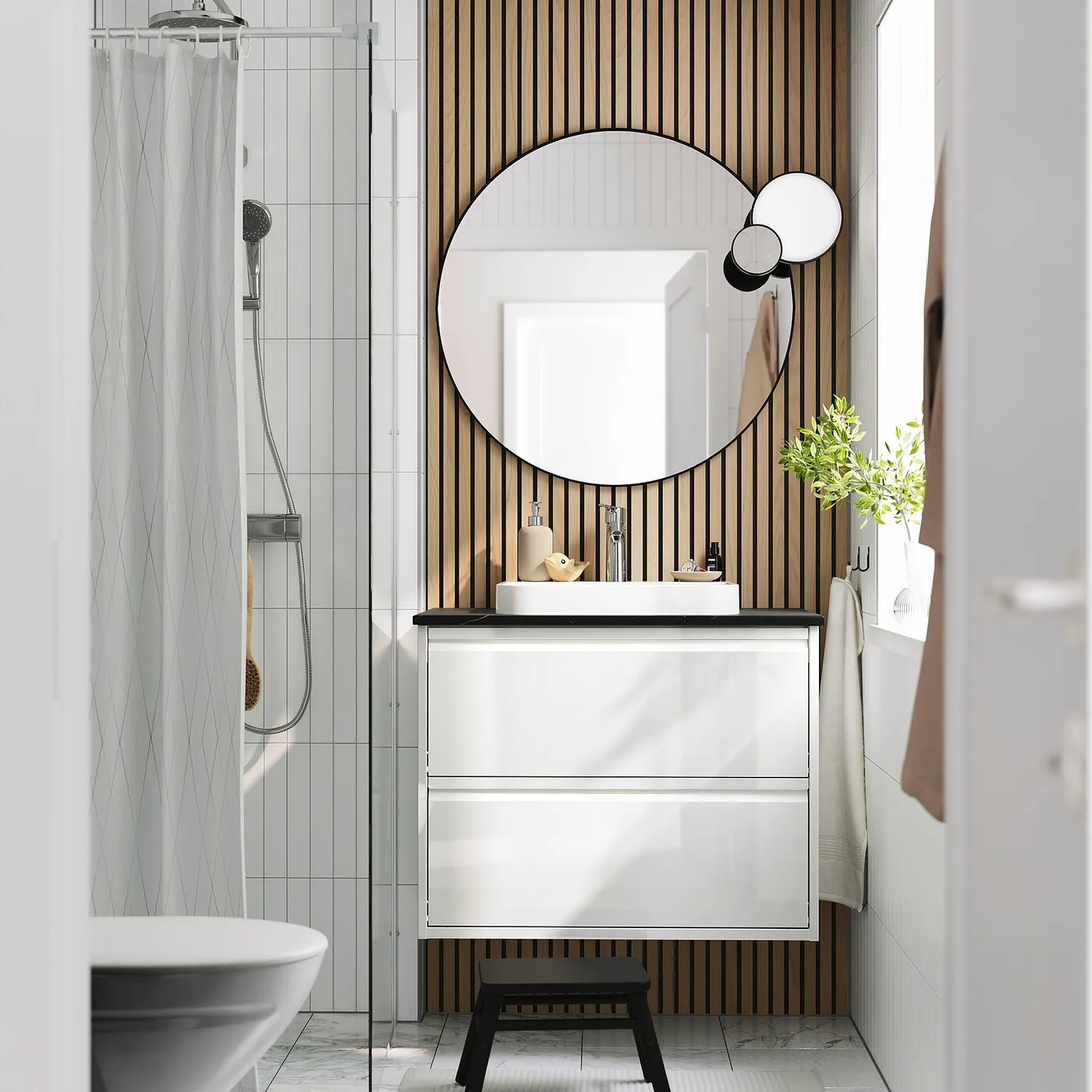Сочетайте с другими шкафами из серии ÄNGSJÖN для создания гармоничного решения для ванной, которое подойдет вашему пространству и потребностям.