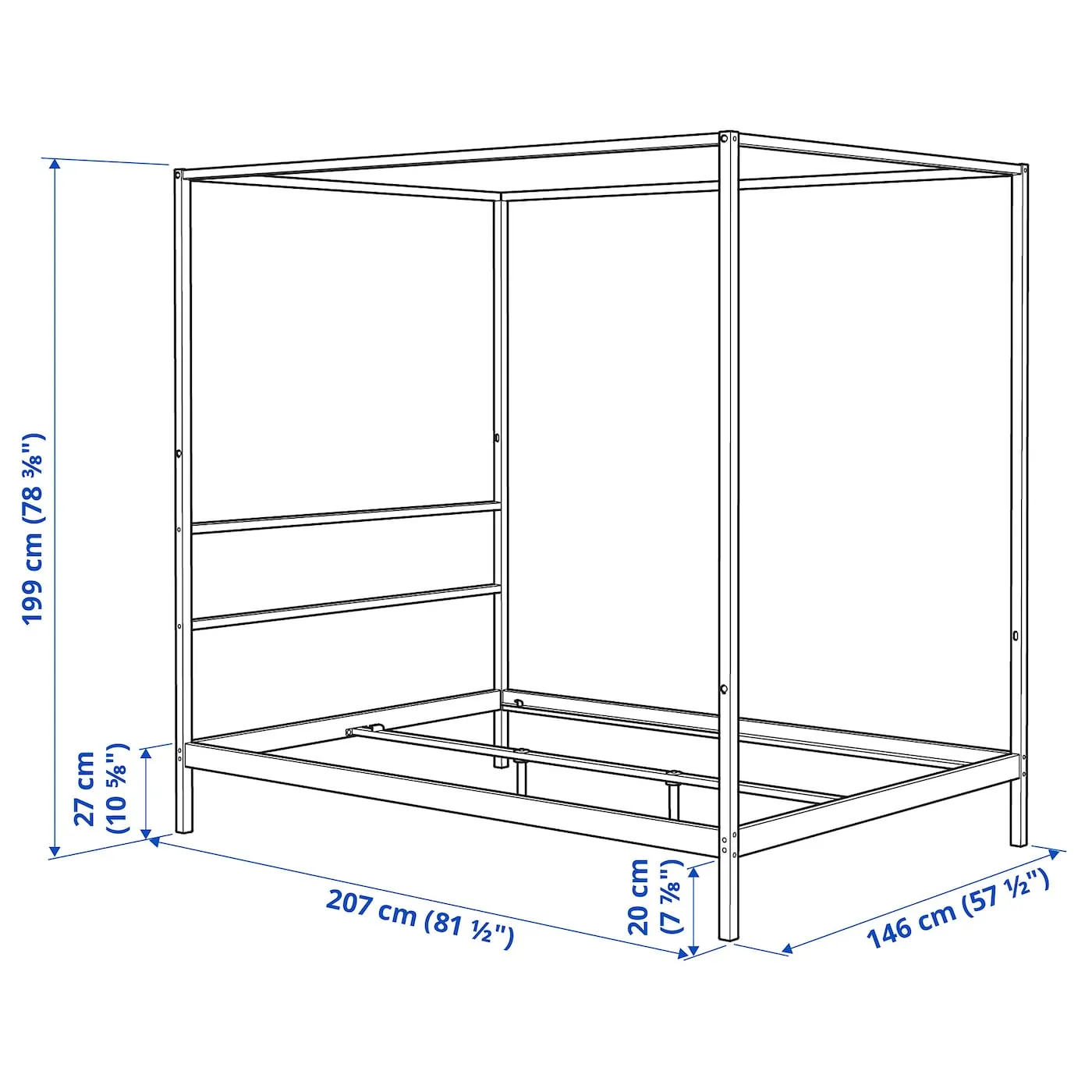 С помощью кровати VITARNA с балдахином можно создать уютный уголок для сна и отдыха. Комбинация с панелями SKÅDIS позволяет отделить пространство и легко добавить различные аксессуары.