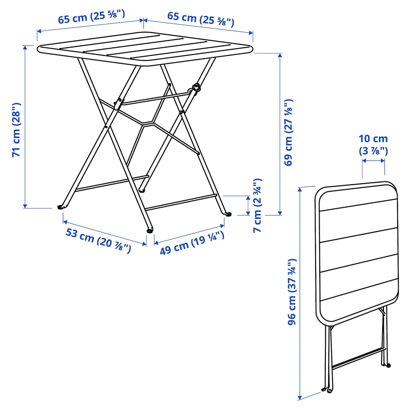 Идеально подходит для балкона и других небольших мест, так как стол и стулья можно сложить и убрать.