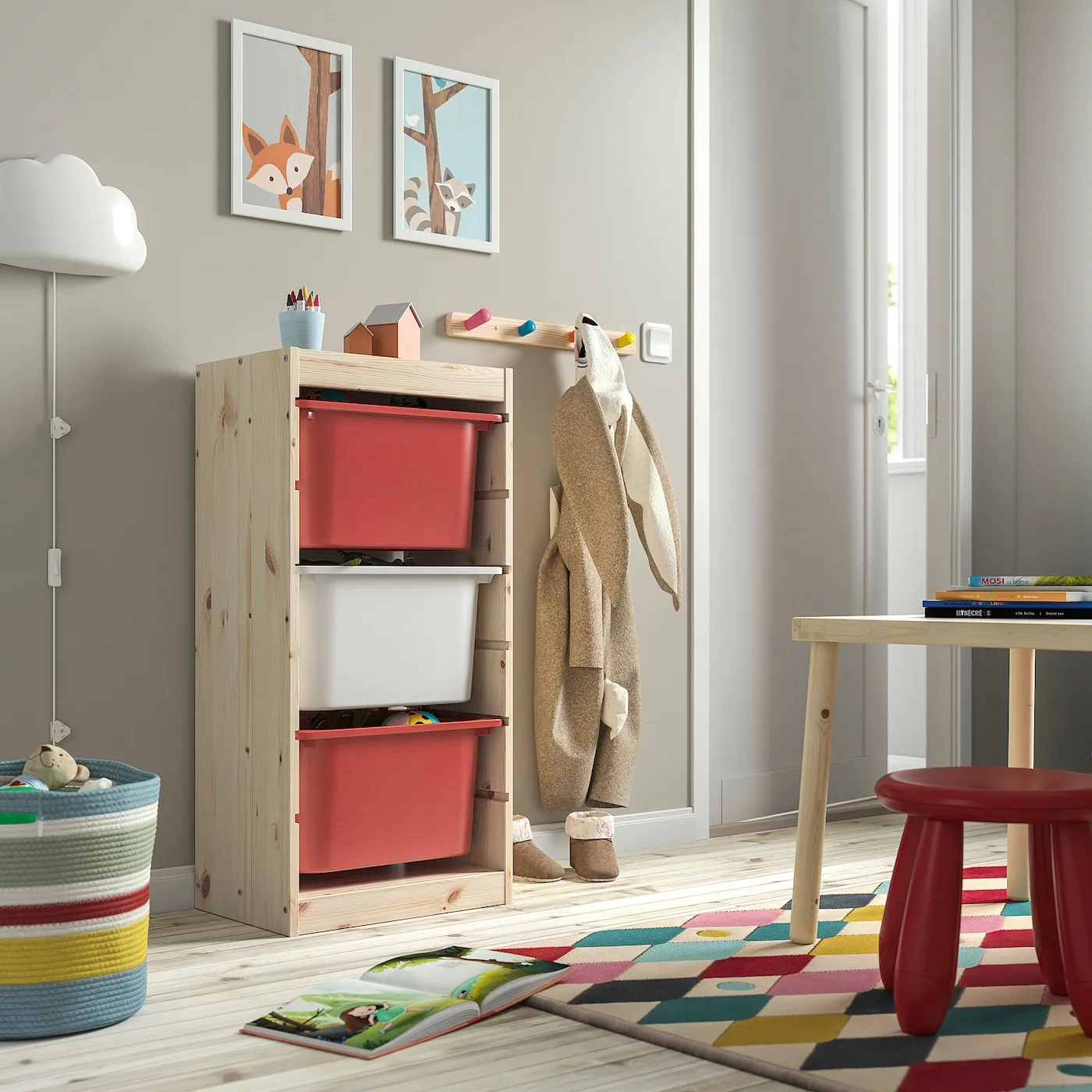 Детям нужна хорошая и вместительная система для хранения их вещей. Серия TROFAST предлагает деревянные каркасы, сетчатые и пластиковые ящики (как минимум на 50% из переработанных материалов). Легко выдвигаются, переносятся и устанавливаются обратно на место.