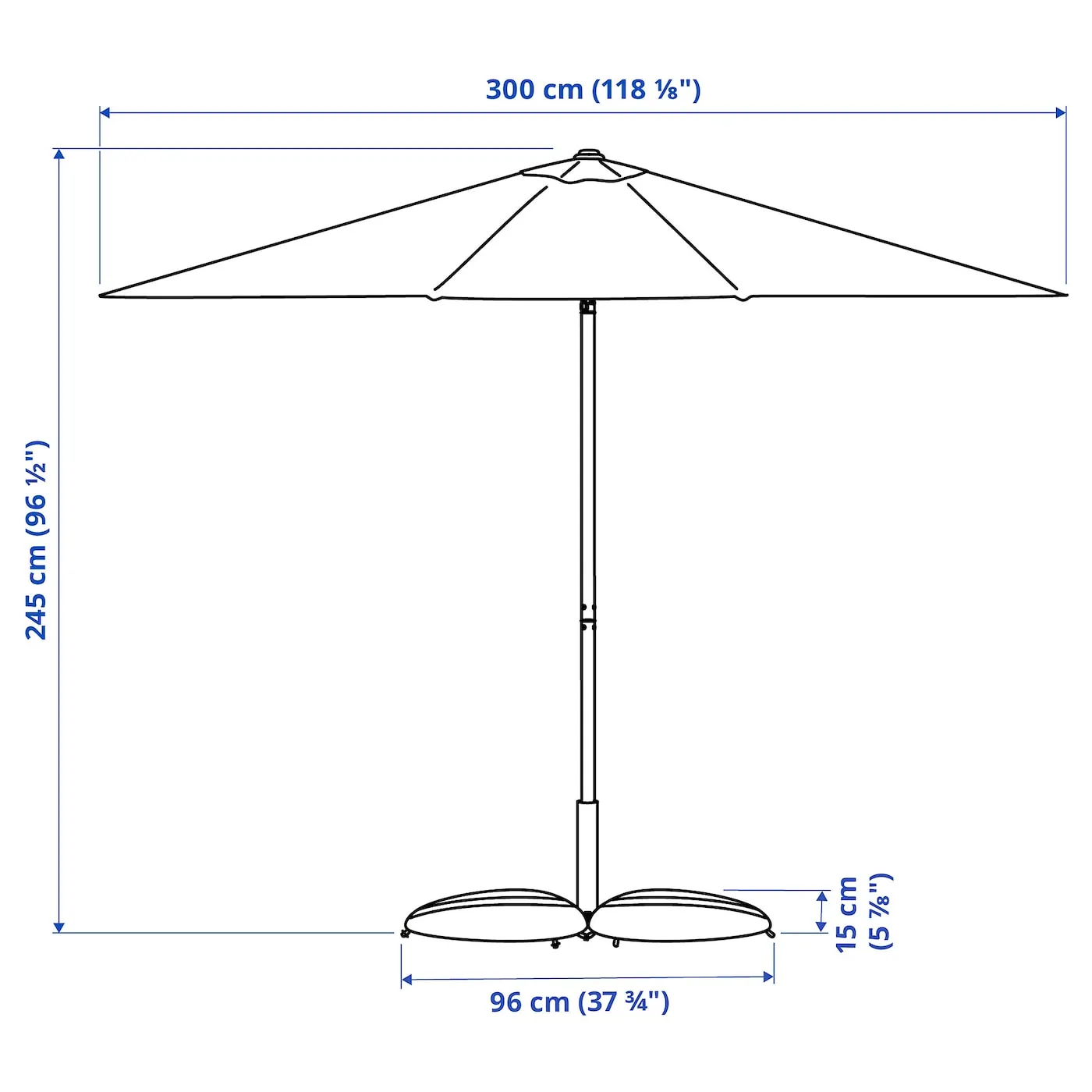 Можно дополнить чехлом для зонта TOSTERÖ (220 см).