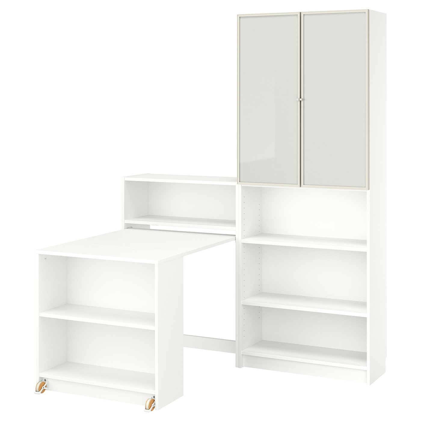 Любимый символ, который можно использовать по-разному. Эта комбинация книжного шкафа BILLY с откидным столом и как открытым, так и закрытым хранением предлагает место для вещей, которые вы хотите спрятать или выставить на показ.