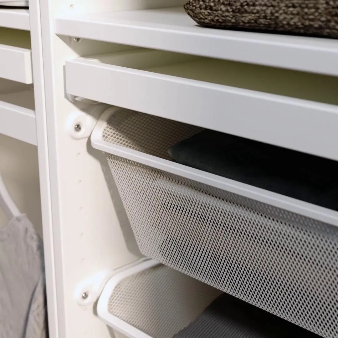 Сетчатая корзина позволяет воздуху циркулировать и идеально подойдёт для хранения сложенной одежды, носков или аксессуаров.