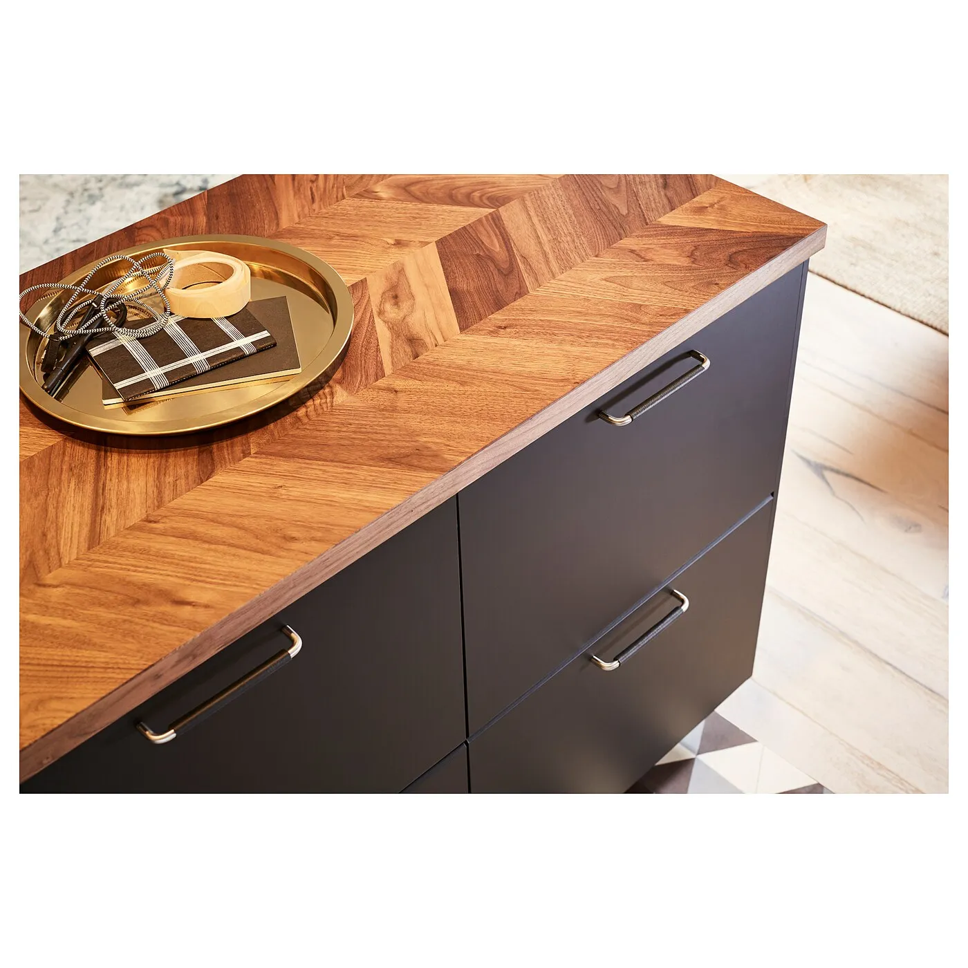 Столешница с толстым слоем орехового шпона — это прочный натуральный материал, который можно шлифовать и обрабатывать при необходимости.