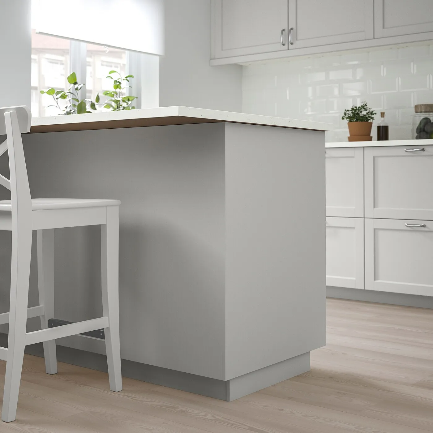 Рамка из массива дерева с фасками и вставная панель из шпона придают кухонным фасадам LERHYTTAN классический, традиционный вид. Светло-серое покрытие создает ощущение уюта и придает кухне неподвластное времени очарование.