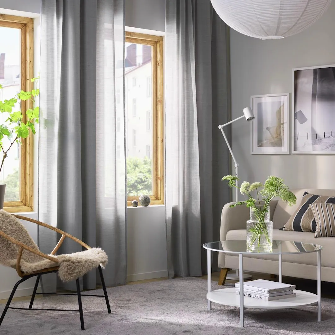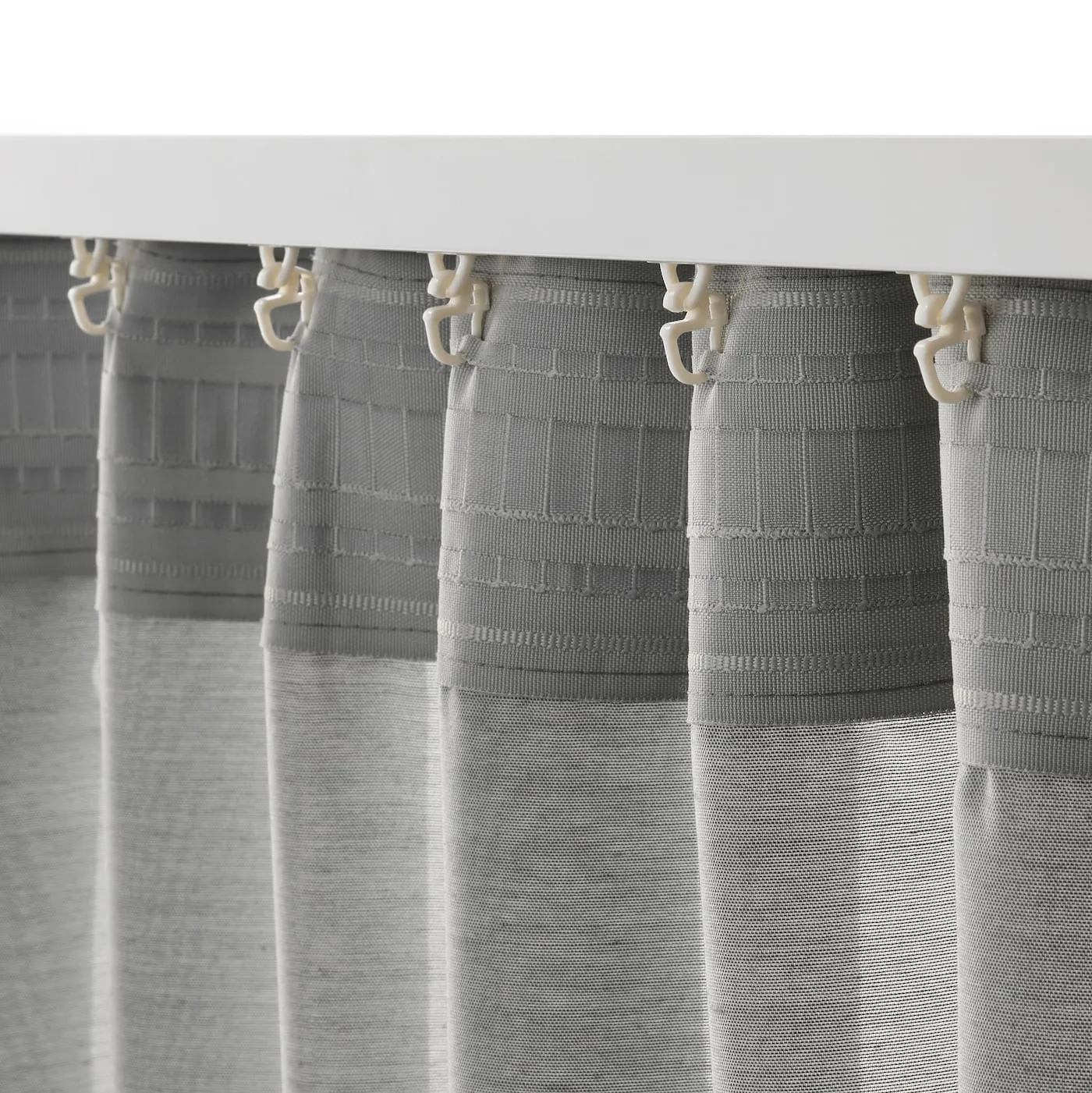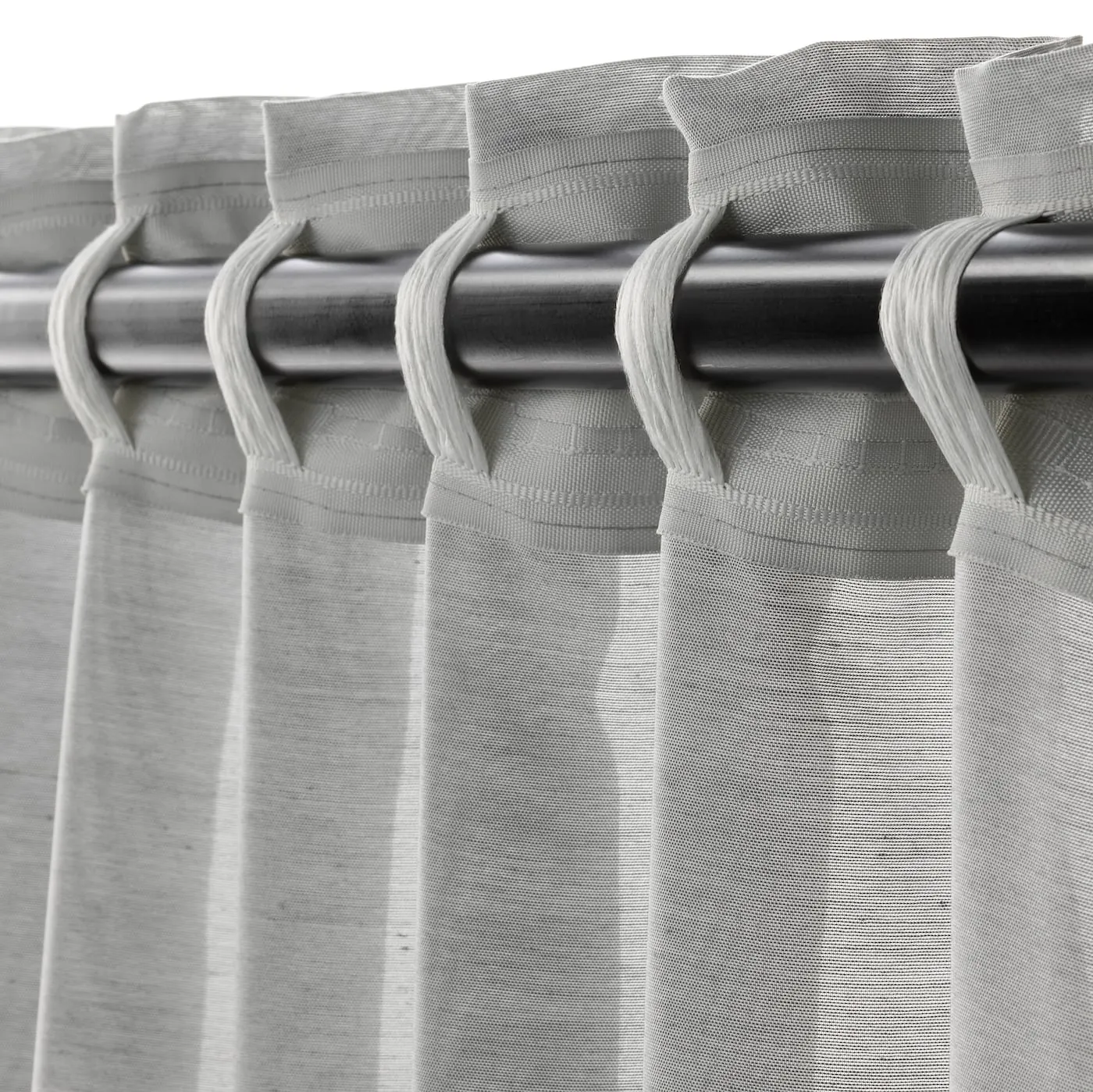Шторы HILJA в сером цвете с тонкой текстурой пропускают свет и обеспечивают уединение. Лёгкая и устойчивая к выцветанию ткань мягко ложится, а универсальная верхняя лента позволяет выбрать разные варианты подвеса.
