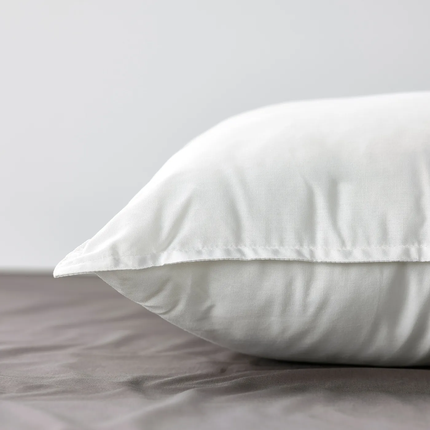 Низкая подушка из легкого в уходе материала, смешанного из полиэстера и хлопка, с наполнителем из волокон полиэстера из переработанных материалов.