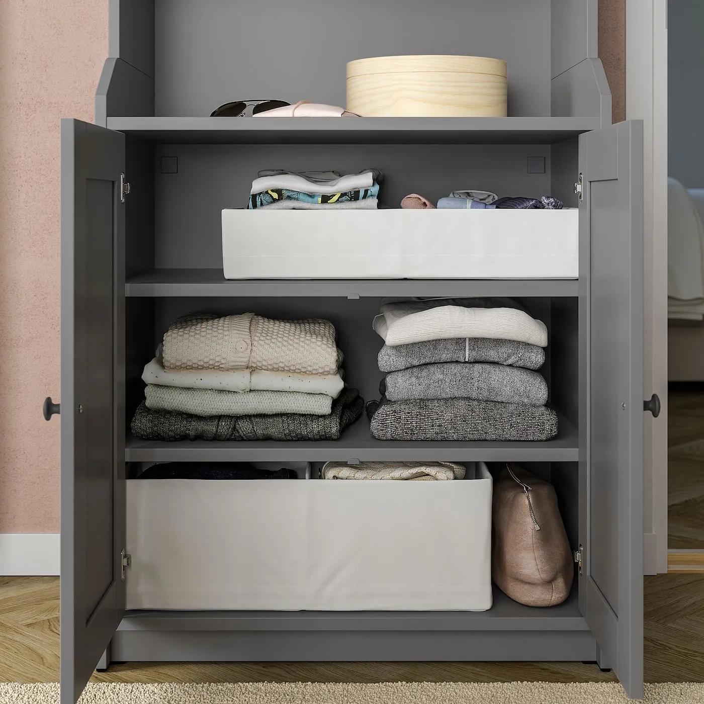 Используйте одну коробку для носков, другую для спортивной одежды или сложенных свитеров. Эти коробки помогают организовать хранение и рационально использовать пространство. Объедините с другими продуктами серии STUK для полного контроля над вашими хранениями.