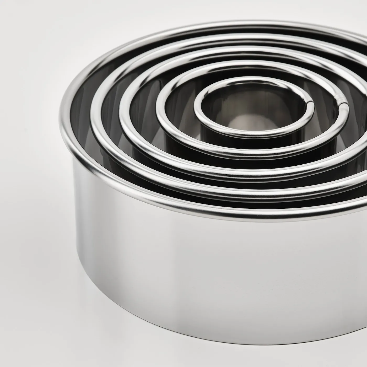 В комплекте: 5 круглых формочек для печенья (диаметр 3 см, 5 см, 7 см, 9 см и 11 см).