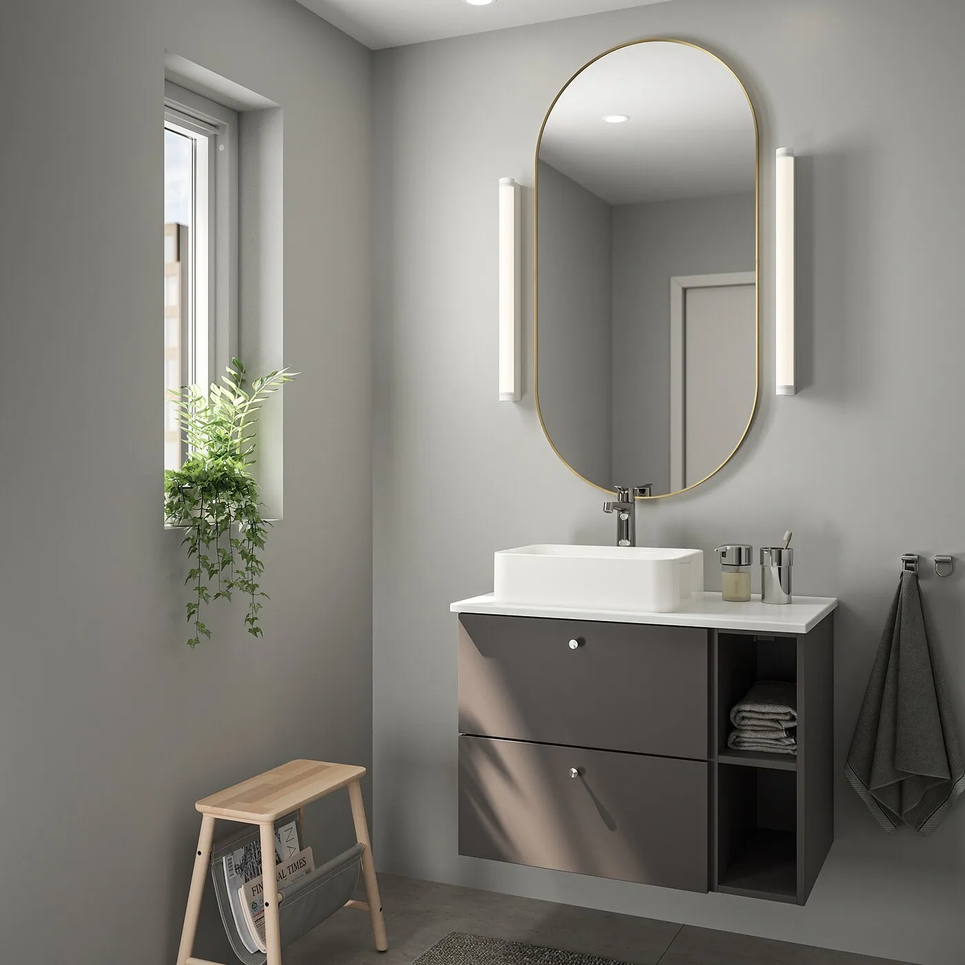 Украшая помещение зеркалами, вы добавляете ему глубину и оживляете его. Зеркало LINDBYN с закругленными углами выглядит мягко, а его золотистая рама и аккуратный дизайн придают интерьеру элегантность.