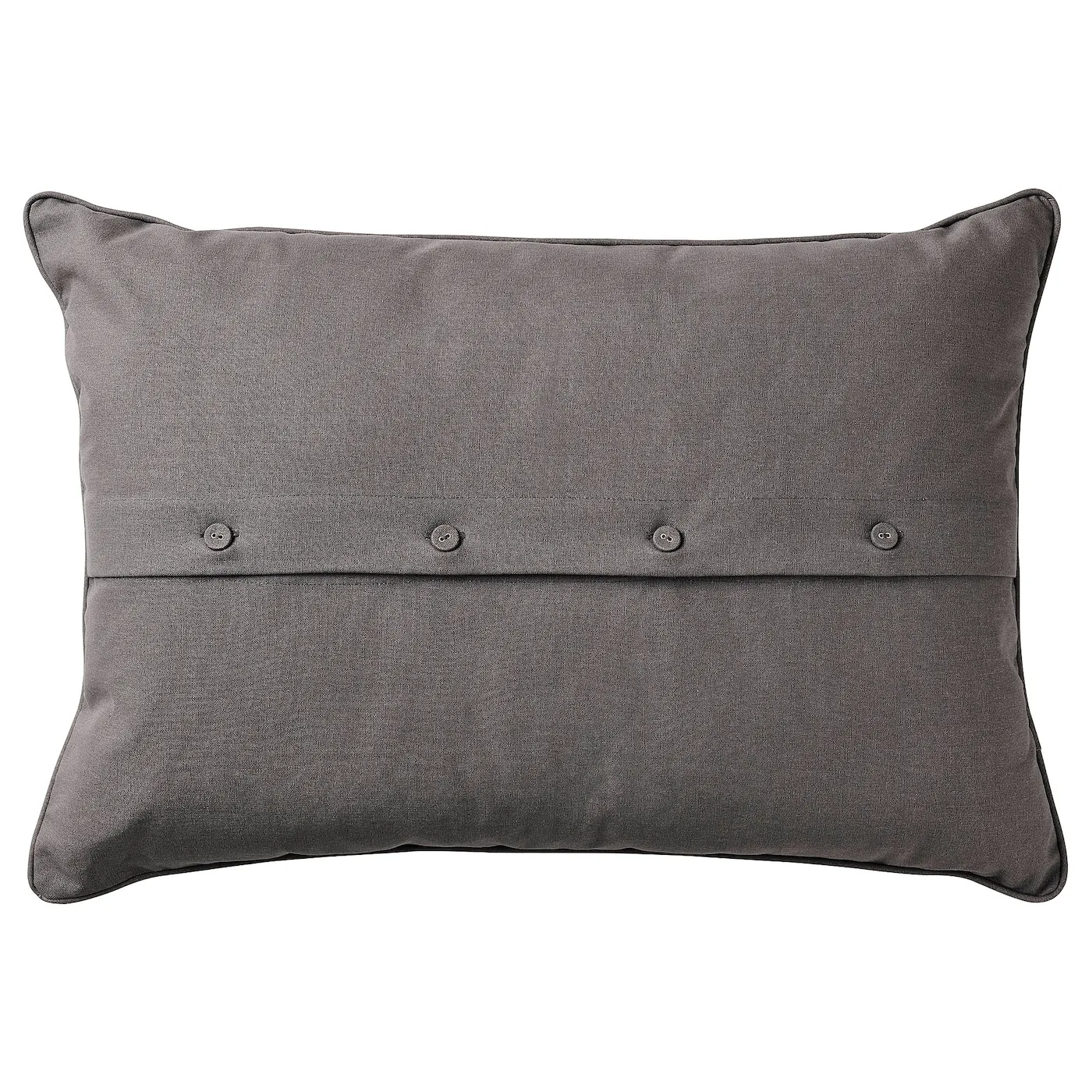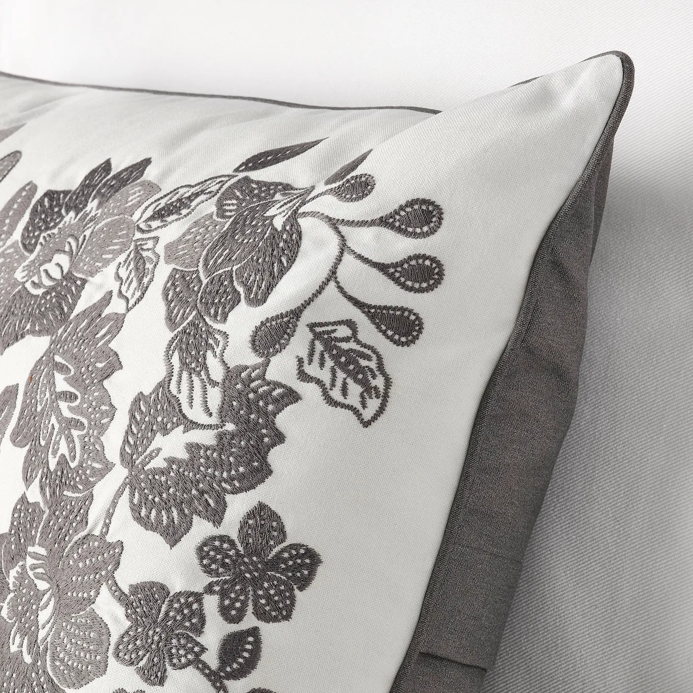 Подушка из чистого хлопка с оживлённым вышитым цветочным узором в серых тонах. Обратная сторона в однотонном сером цвете с застёжкой на пуговицах. Мягкий и упругий наполнитель из переработанного полиэстера.