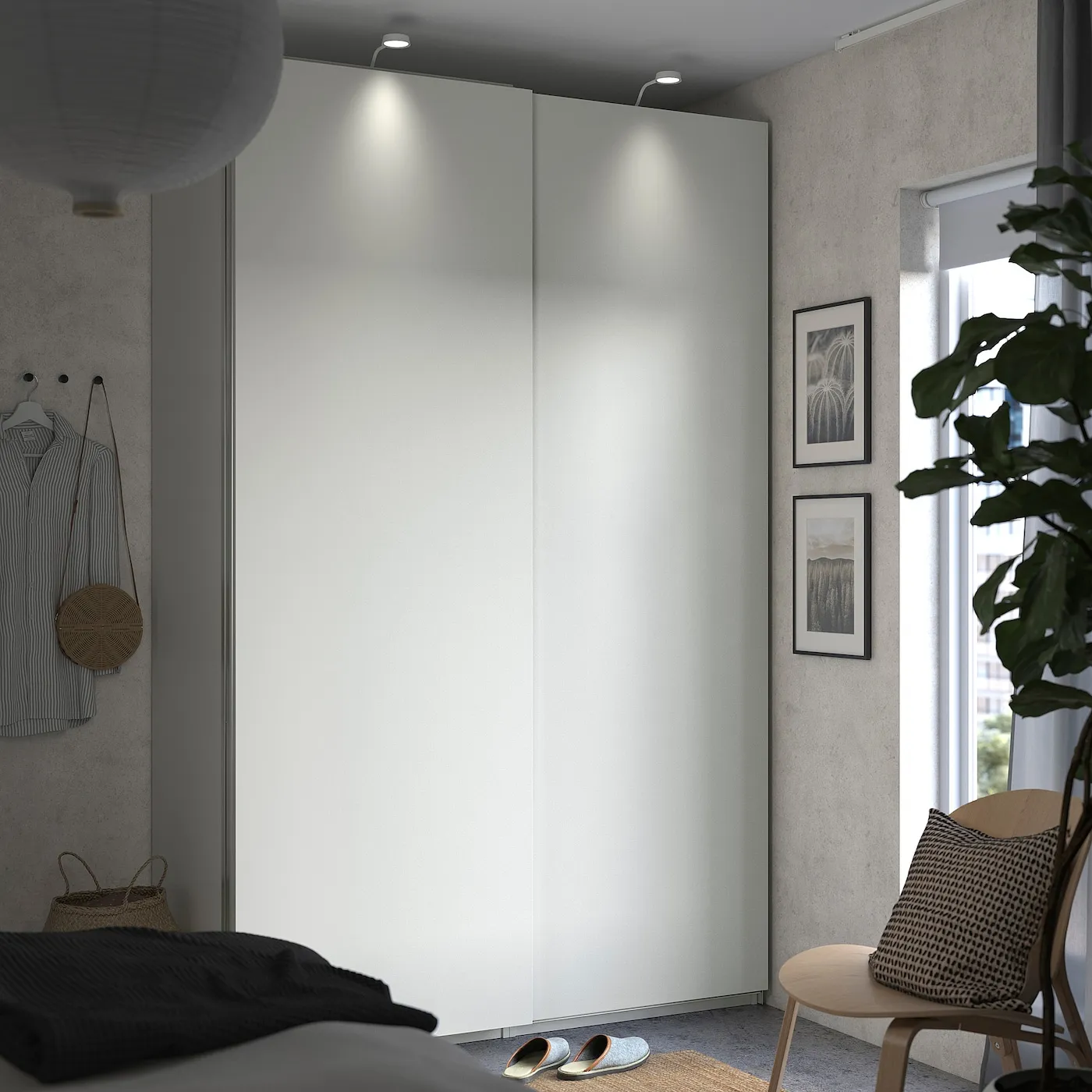 Матовые белые двери HASVIK придадут вашему интерьеру аккуратный вид и легко установятся на каркас гардероба, не занимая лишнего места на полу.