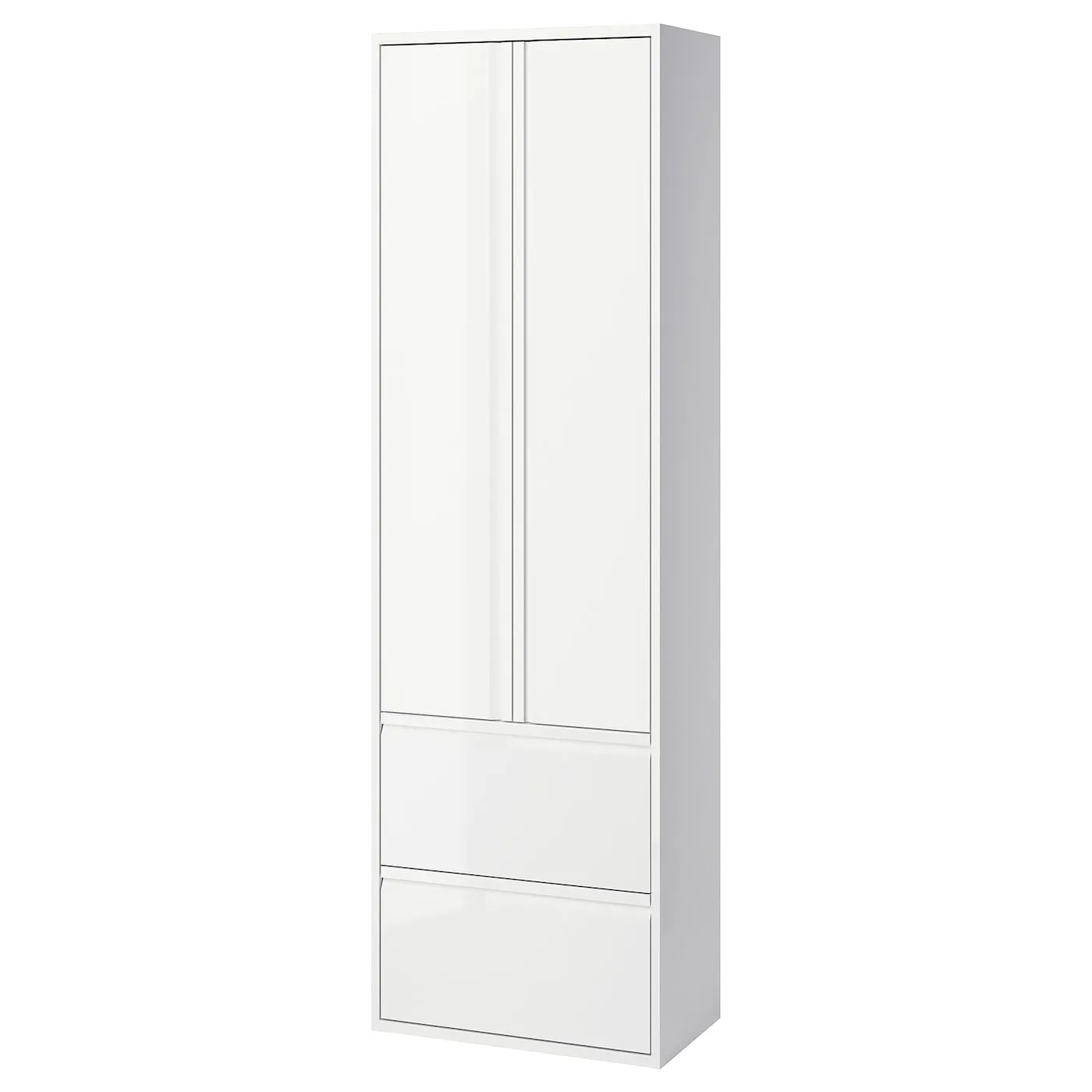 Современный облик серии ÄNGSJÖN придают встроенные ручки и минималистическое исполнение. Этот высокий шкаф с ящиками и дверцами обеспечивает просторное хранение, занимая немного места на полу.
