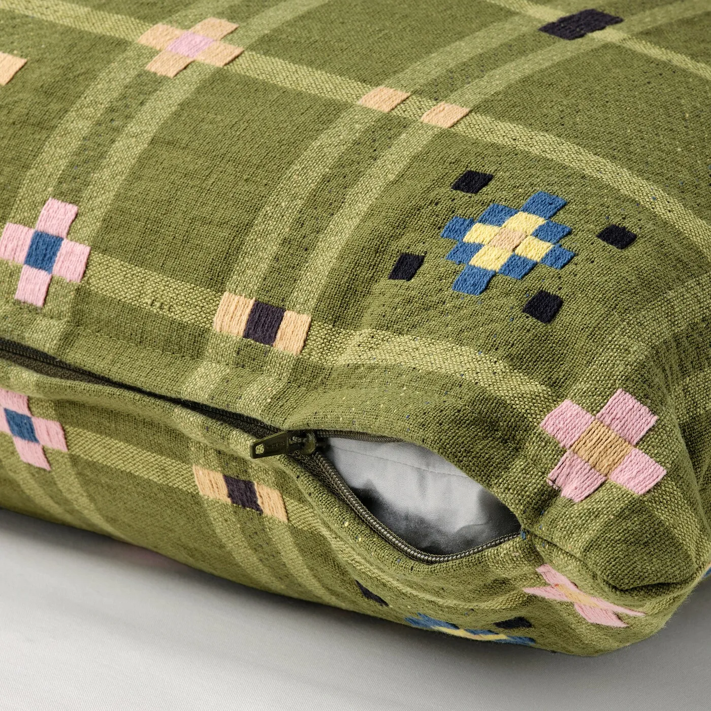 Наволочка KUSTGRAN в желто-зеленом цвете предлагает новое видение традиционного скандинавского узора «Монашеский пояс». Текстурированная хлопчатобумажная ткань добавляет теплоты и цвета вашему интерьеру.
