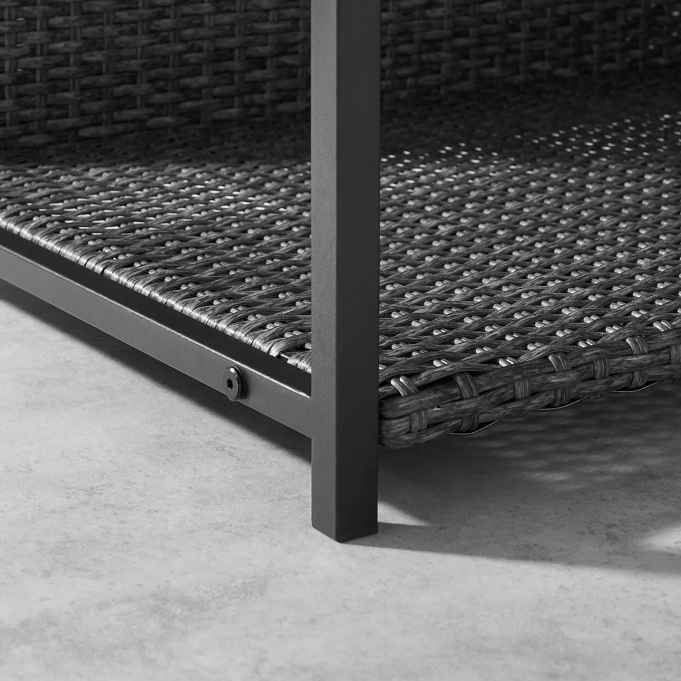 Лежанка долго сохраняет свежий вид, так как искусственный ротанг устойчив к выцветанию и обработан для защиты от растрескивания и высыхания.