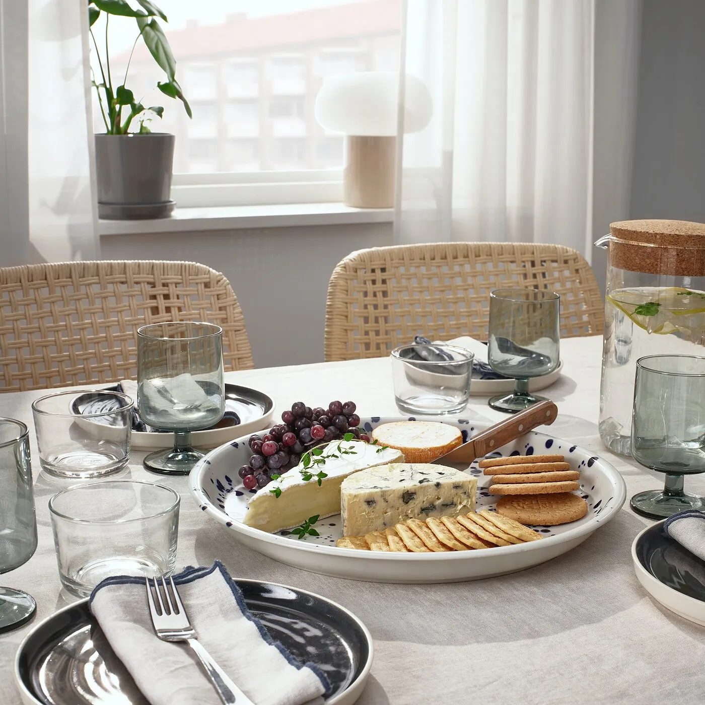 Вы можете использовать всю посуду сразу или выделить поверхность с яркими брызгами в сочетании с более спокойной сервировкой.