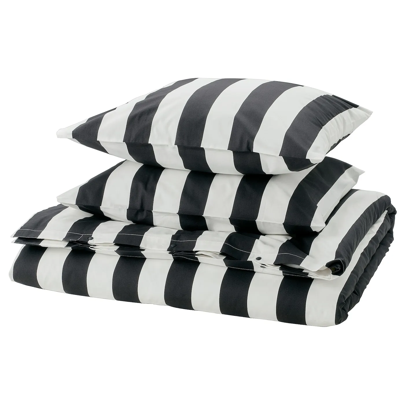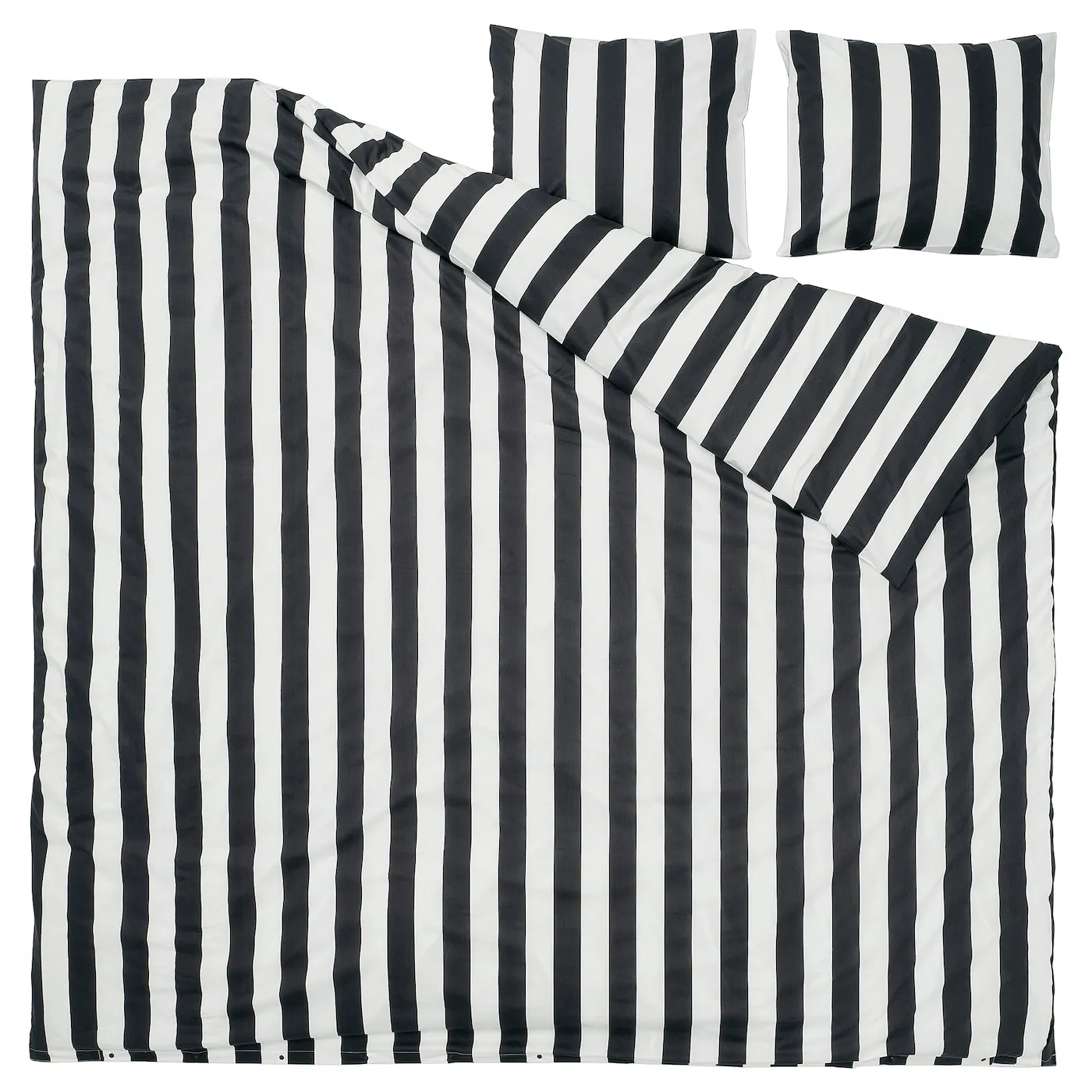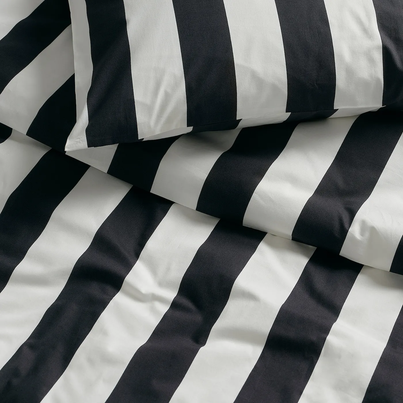 Комплект постельного белья в классическую полоску с современным дизайном. Ткань из перкаля, что делает ее очень прочной, прохладной и мягкой для сна. Смесь хлопка и вискозы хорошо дышит и впитывает влагу.