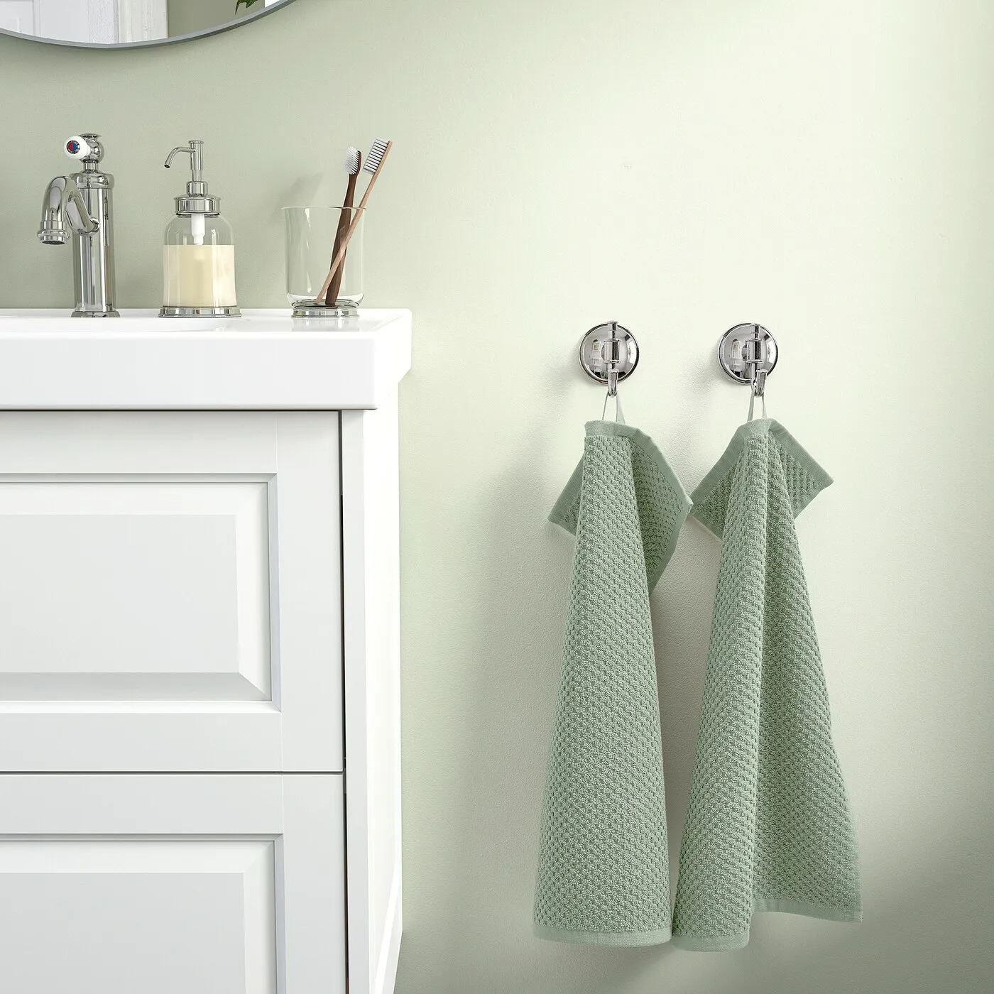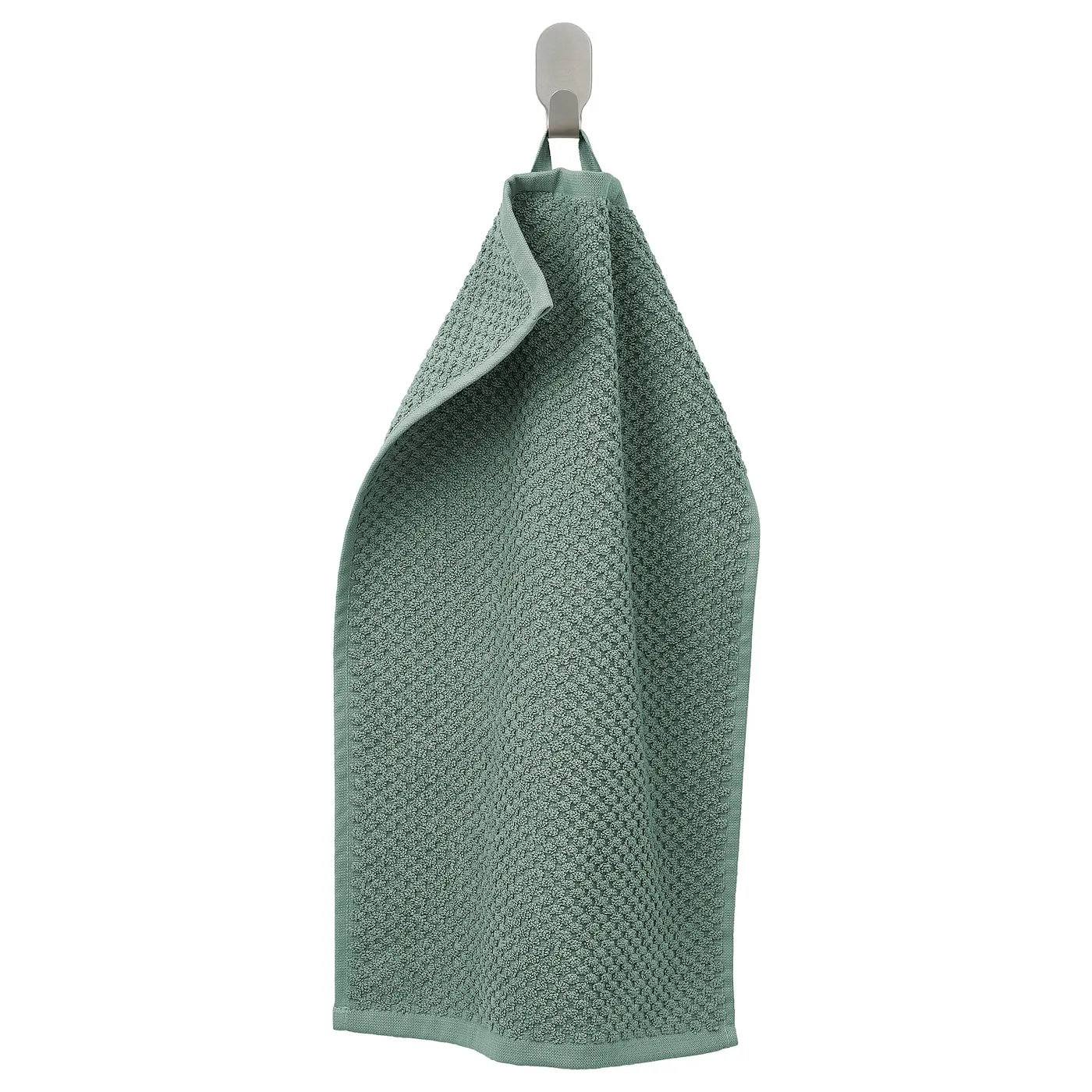 Мягкое и пушистое полотенце GULVIAL светло-серо-зеленого цвета средней плотности (500 г/м²), изготовлено из 100% хлопка. Оно прочное, хорошо впитывает влагу и идеально подходит для повседневного использования.