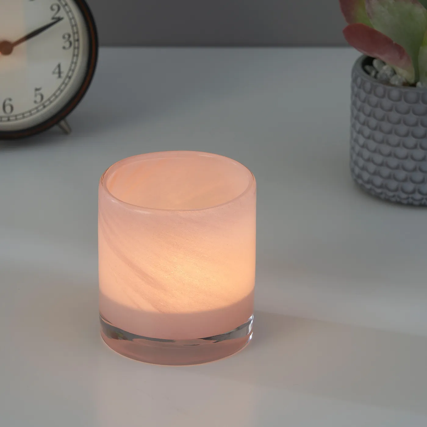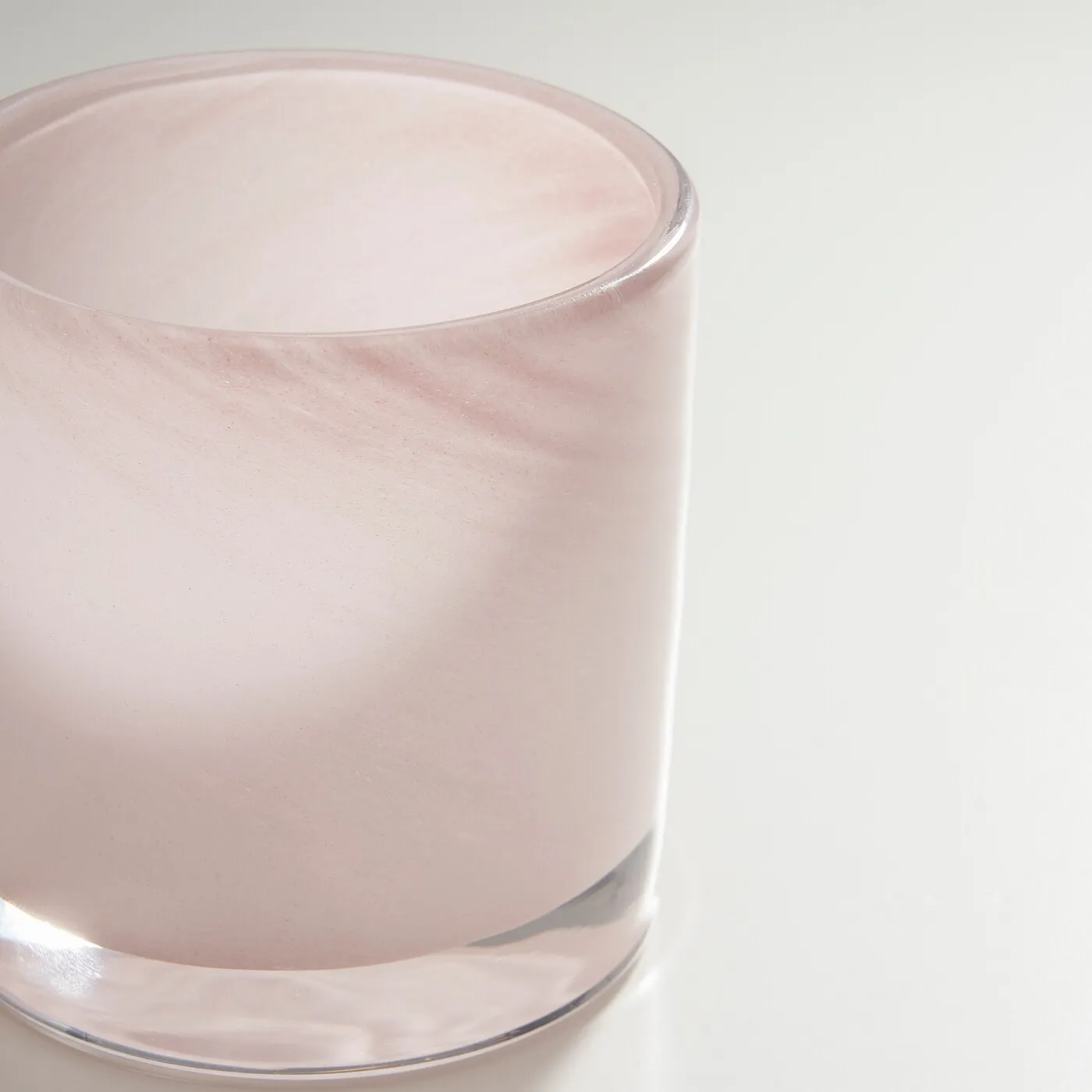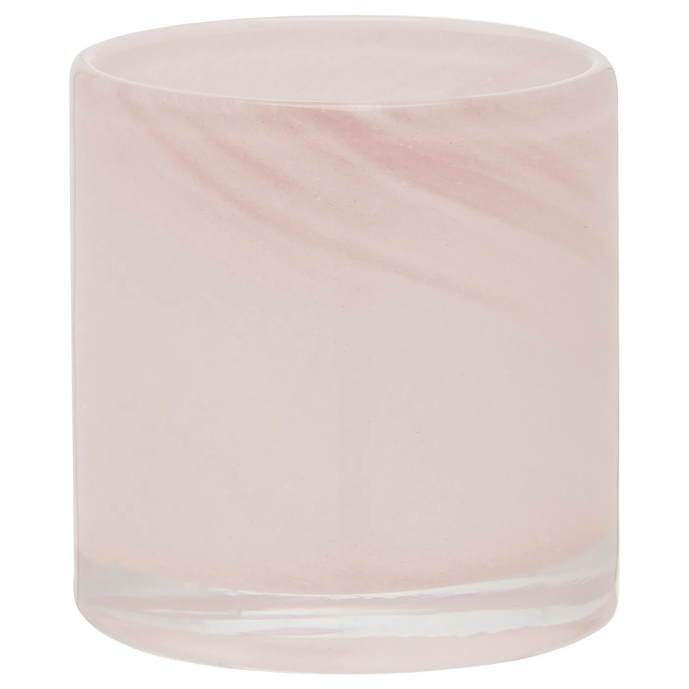 Каждый подсвечник, выполненный вручную из стекла, имеет уникальный узор благодаря окрашиванию во время формовки, что создает декоративный рисунок.