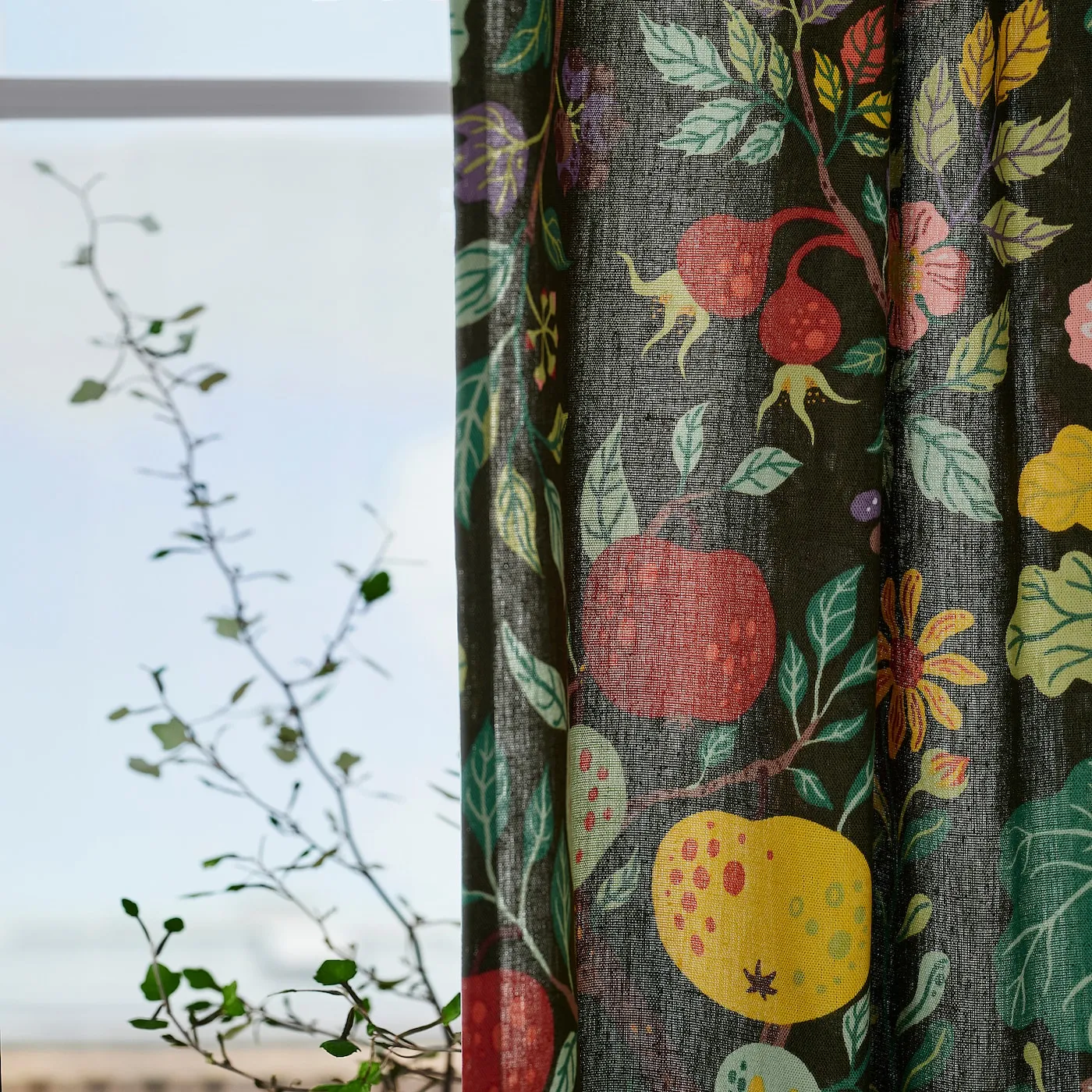 В этом волшебном саду ярких цветов на черно-зеленой основе всегда можно найти что-то новое. Смесь хлопка и рами деликатно смягчает свет, проникающий в комнату. Длина 250 см идеально подходит для размещения над окном.