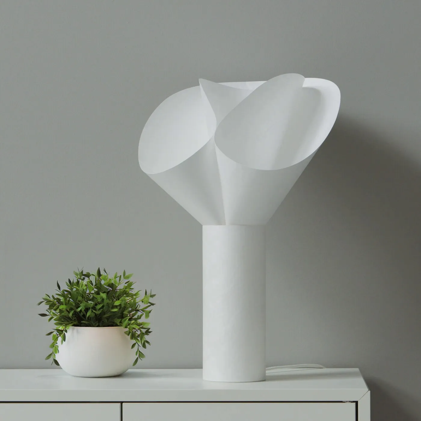 Настольная лампа из бумаги? Ещё лучше, когда её цветочная форма выполнена из мягкого и долговечного синтетического материала, который можно переработать. Включите лампу, чтобы каждая волокнистая структура стала видимой.