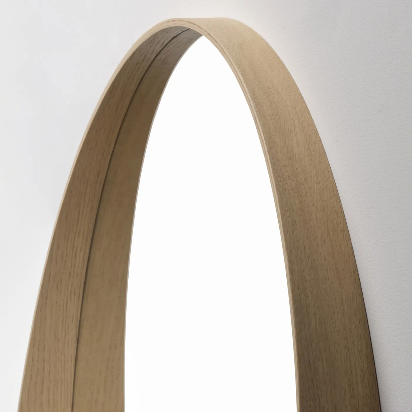 Изящная форма и дубовый шпон придают каждому зеркалу уникальный характер. Рама в нижней части зеркала образует полочку, на которую можно поставить мобильный телефон или бумажник.
