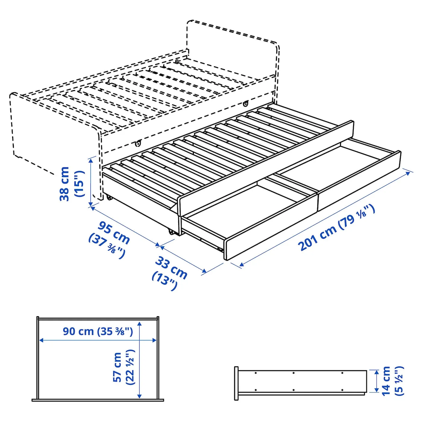 Выкатная кровать идеально подходит для случаев, когда к вам кто-то остается ночевать. В двух ящиках достаточно места для постельного белья и игрушек.