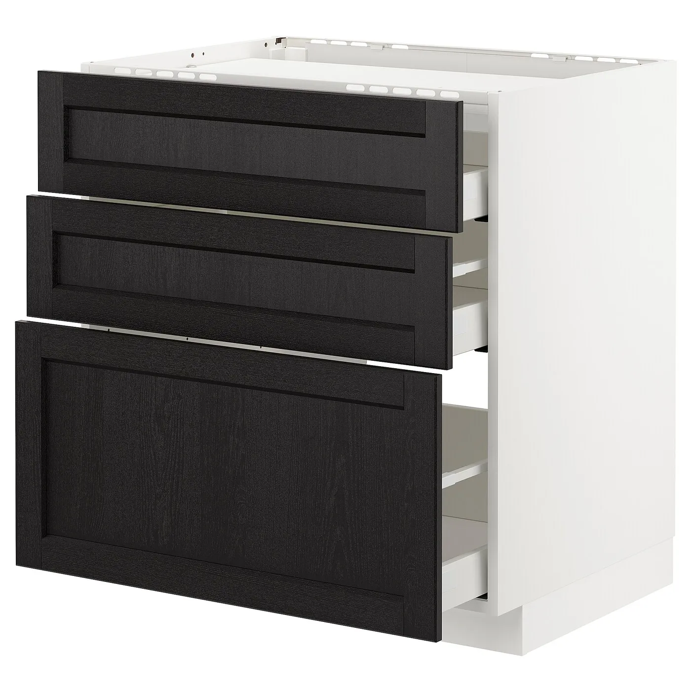Кухонная система METOD предлагает бесконечные возможности для создания кухни вашей мечты. Сочетание с фронтами ЛЕРЮТТАН с черным тонированием и скошенными краями придаст вашей кухне теплый и традиционный вид.