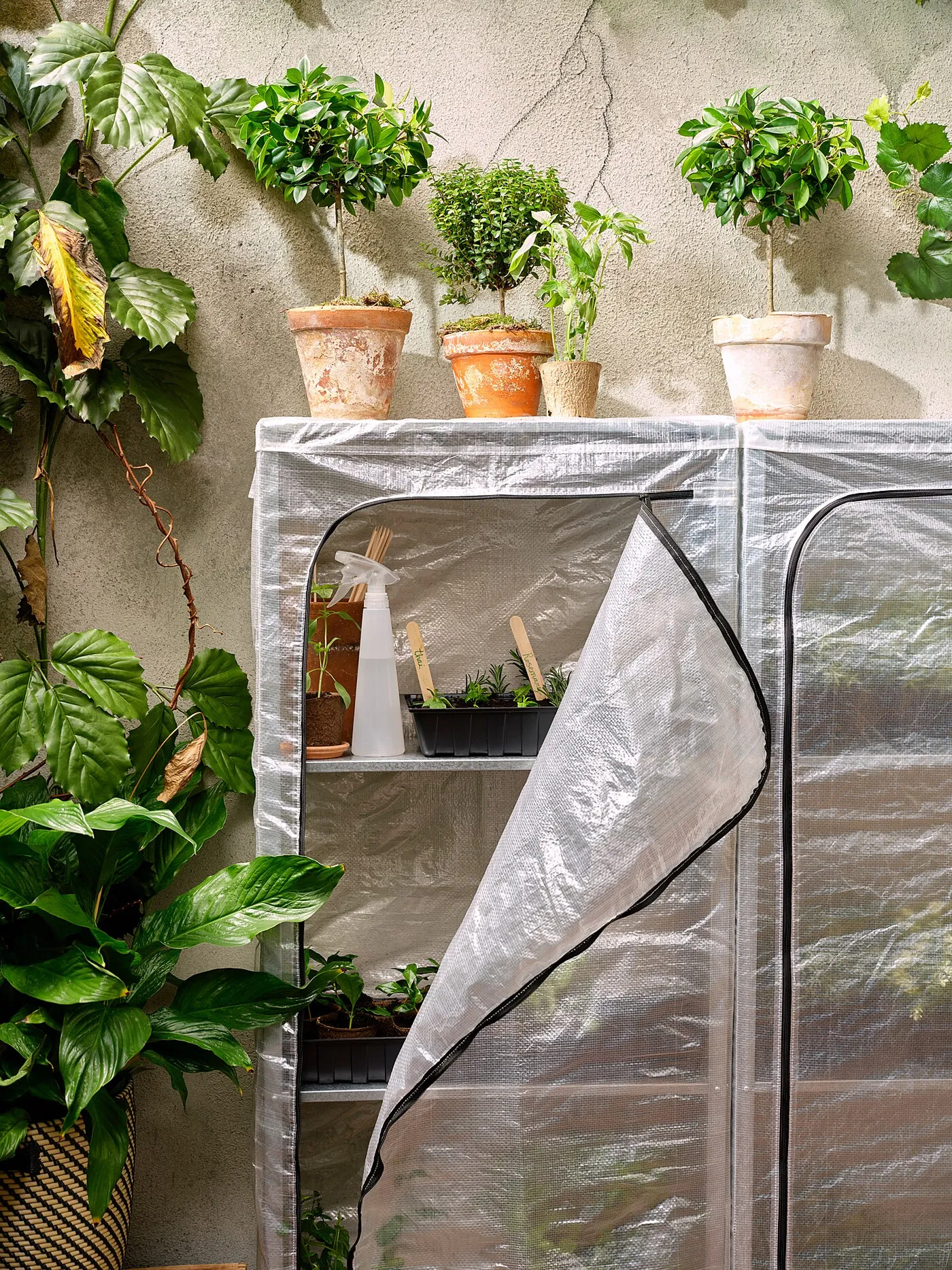 С чехлом HYLLIS легко превратить открытый стеллаж в закрытое место для хранения. Это идеальное решение для защиты вещей от пыли или создания мини-теплицы как дома, так и на улице.