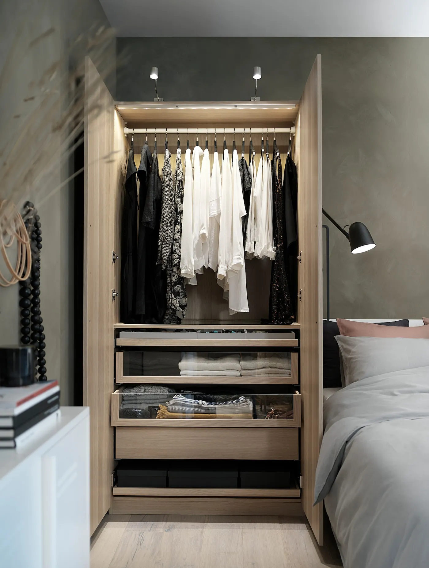 Внутренние аксессуары, которые помогут вам организовать пространство внутри гардероба, продаются отдельно.