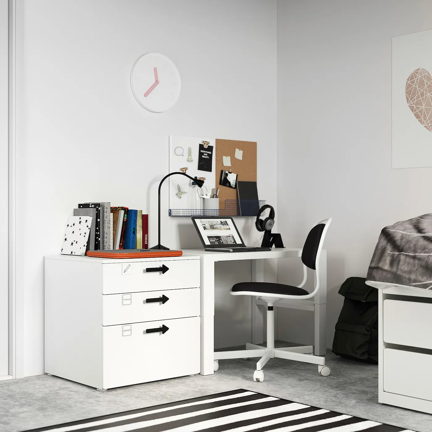 Где удобнее всего хранить ручки, бумагу и другие мелочи? Конечно, в низком комоде! Ваш ребенок сможет сам дотянуться и найти нужное — и, возможно, убрать потом назад.