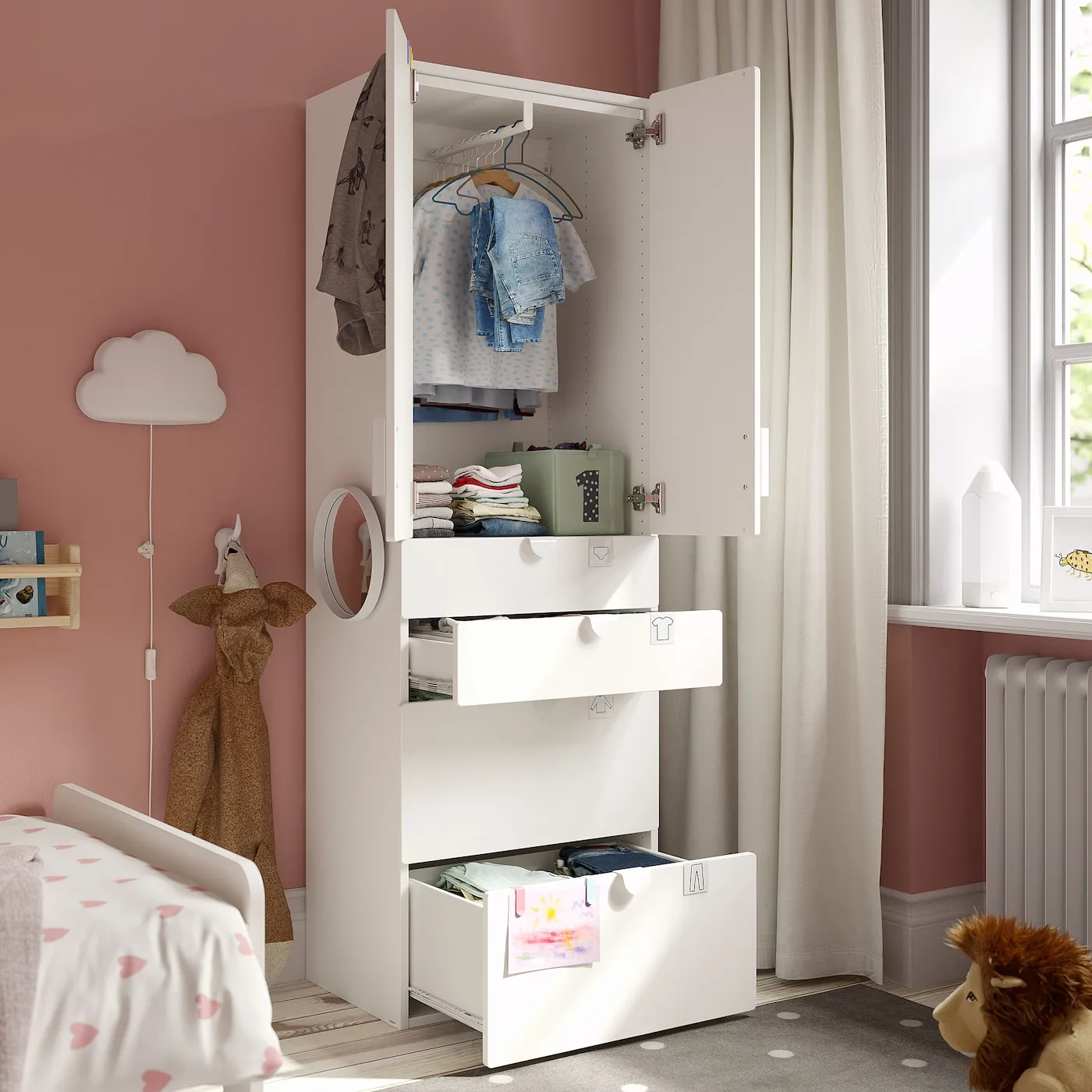 Этот гардероб занимает минимум места, но при этом достаточно вместителен для всех модных перемен – от младенчества до подросткового возраста. Он также оснащен крючками, которые находятся на уровне вашего ребенка, чтобы он мог самостоятельно вешать одежду.
