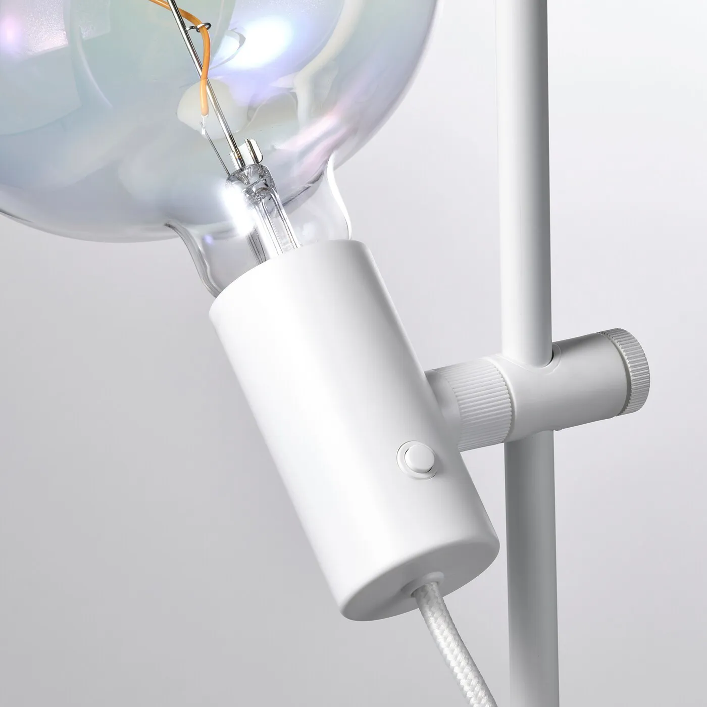 На этом простом торшере энергосберегающая светодиодная лампочка выглядит как мерцающий мыльный пузырь, когда спиральная нить светится сквозь двойное стекло. Вы можете поворачивать и перемещать свет по своему усмотрению.
