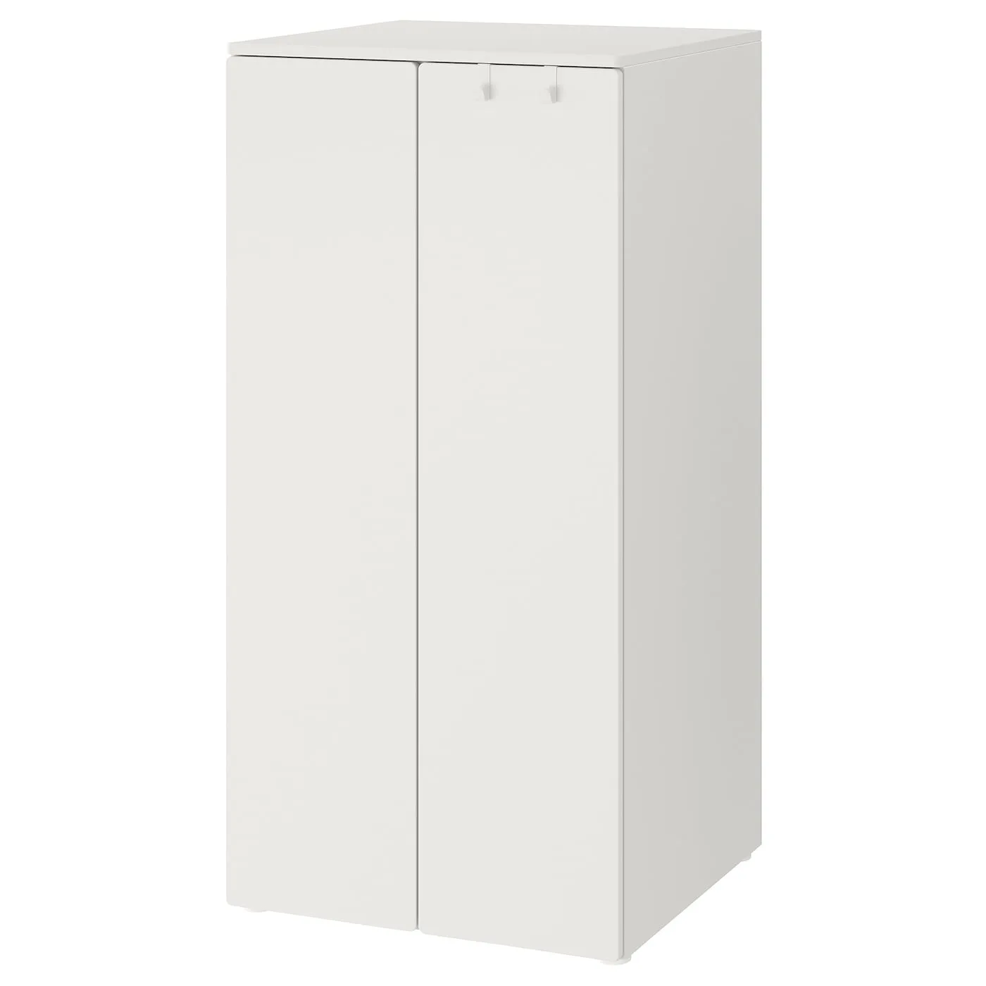 Я сам(а) справлюсь! Высота всех элементов в этом шкафу SMÅSTAD позволяет вашему ребенку видеть, доставать и вешать одежду и вещи на крючки. Идеально подходит для упрямого трехлетки, который все делает сам.