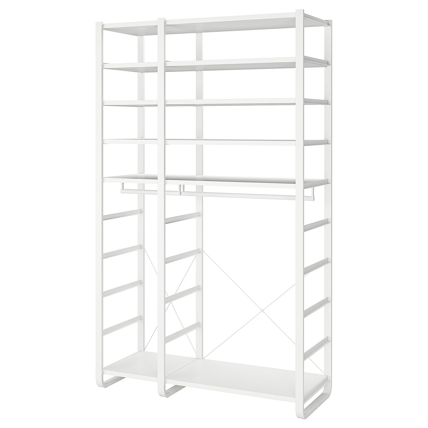 Регулируемые полки и штанга для одежды позволяют легко настроить пространство в соответствии с вашими потребностями.