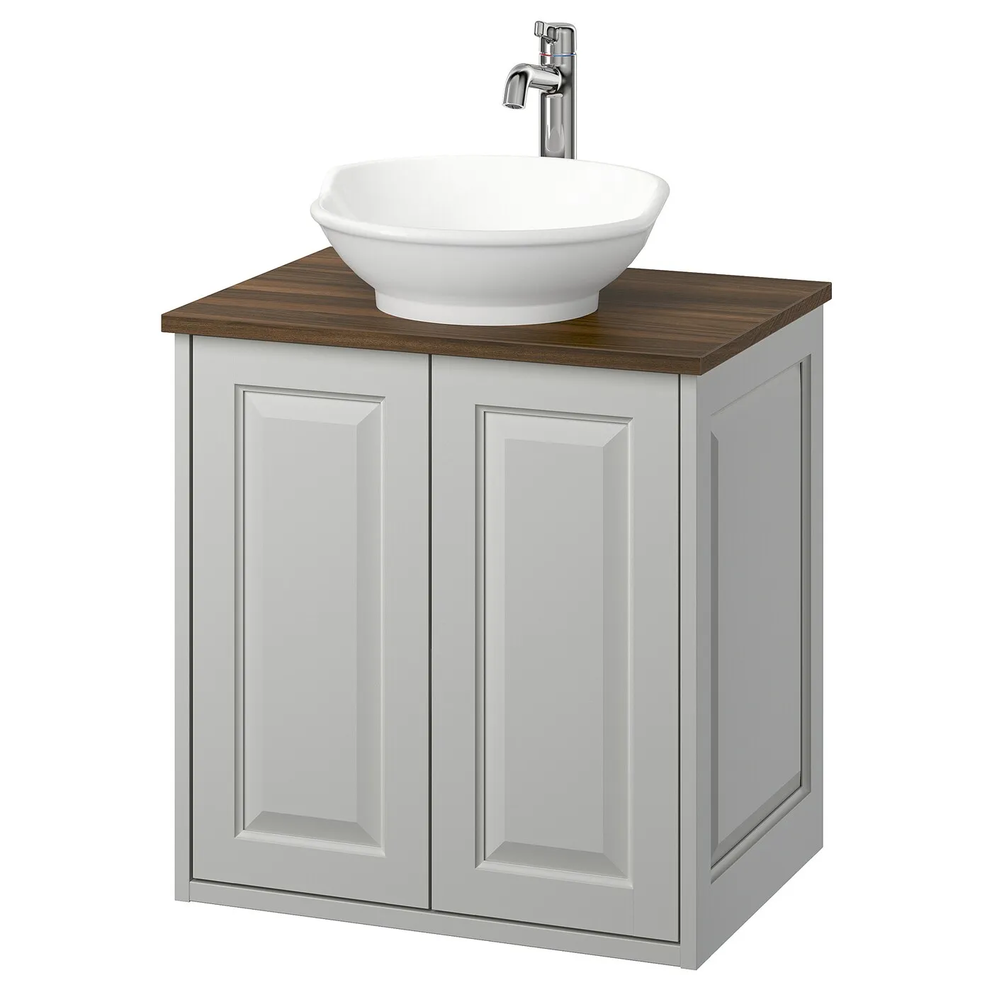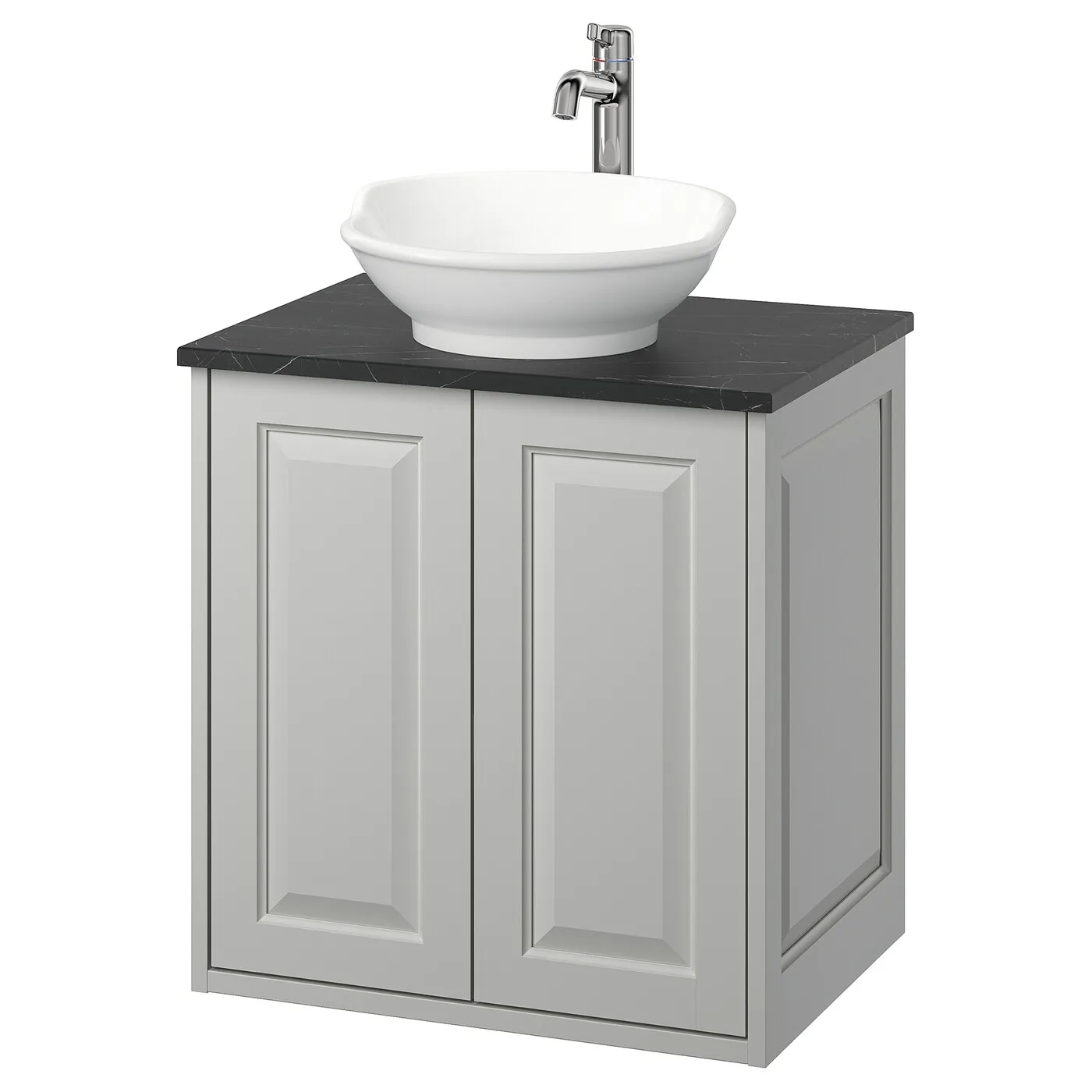 Мебель для ванной TÄNNFORSEN воплощает классическую элегантность с фасками. Этот комплект с тумбой и круглым умывальником с приподнятым задником создает великолепный центр внимания с изысканным видом.