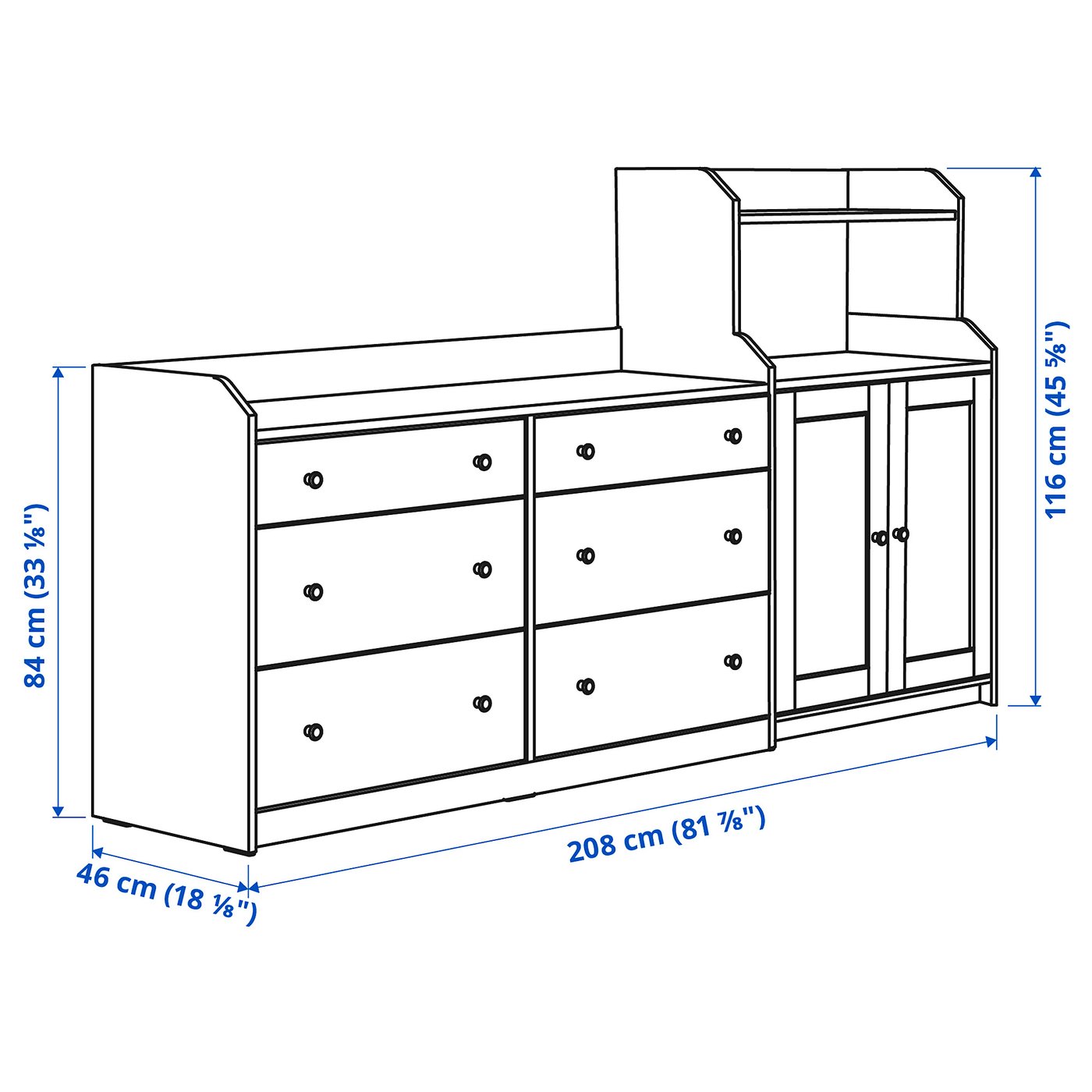 Используйте в спальне или в любом другом месте дома, как самостоятельно, так и с другой мебелью серии HAUGA. Эта широкая комбинация обладает большим объемом для хранения, а поверхность идеальна для лампы или декоративных предметов.
