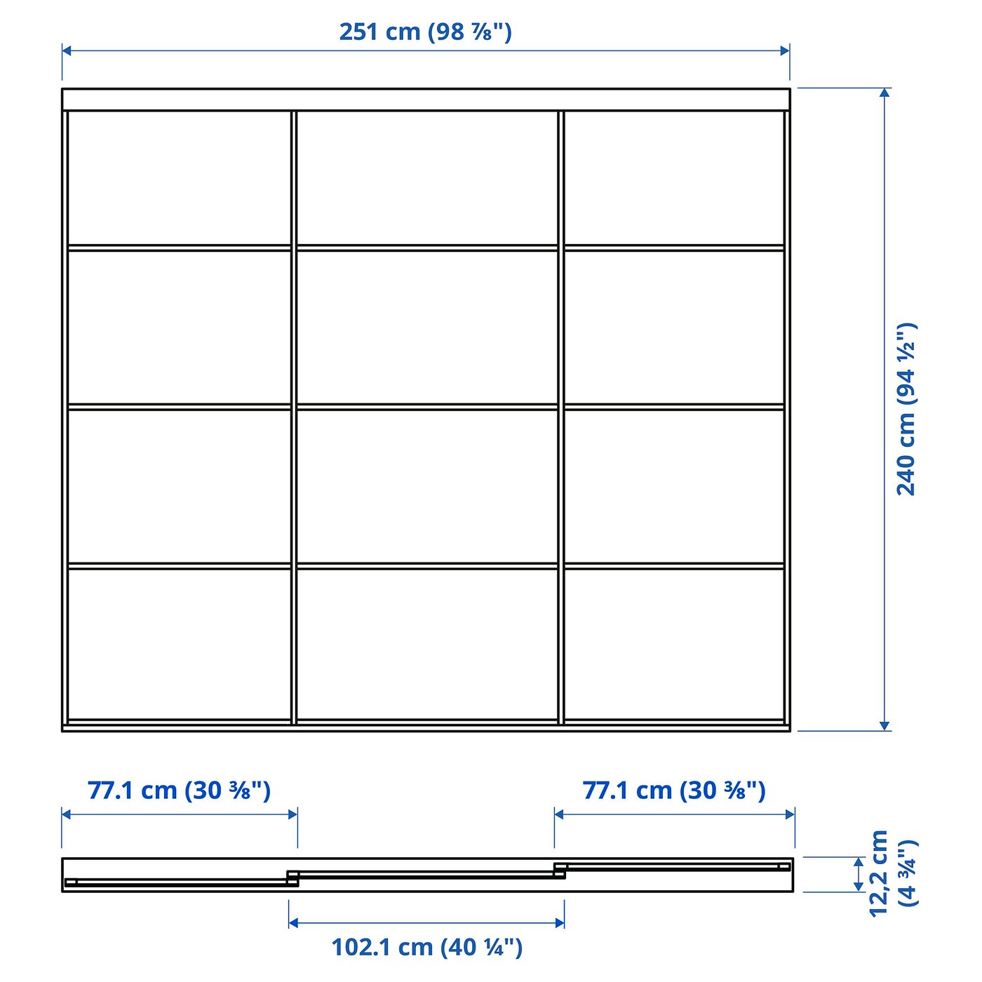 Двери можно монтировать даже в случае небольшого перекрытия. Однако мы не рекомендуем этого делать, если вы используете прозрачные панели, поскольку перекрытие будет заметно, когда двери закрыты.