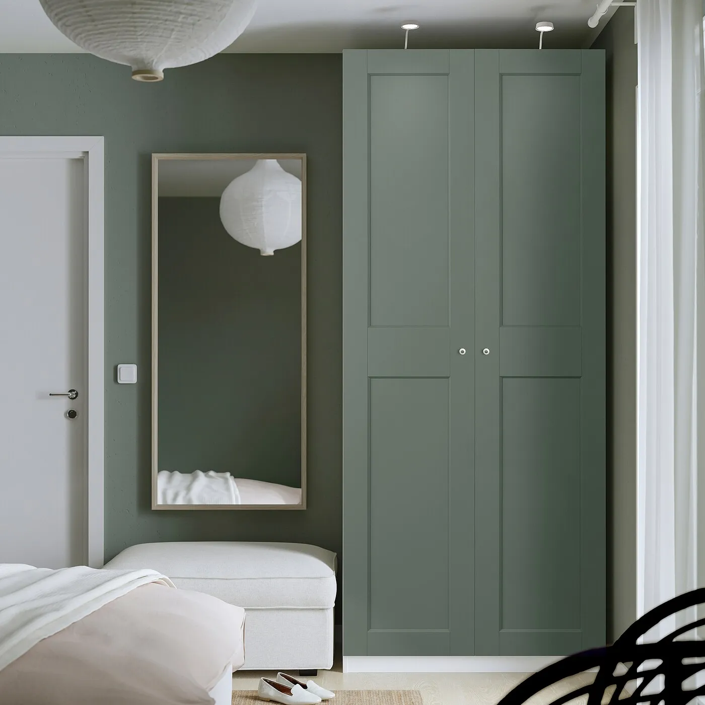 Нежный серо-зелёный оттенок дверей привносит в ваш интерьер гармонию природной палитры и создаёт умиротворяющую атмосферу.
