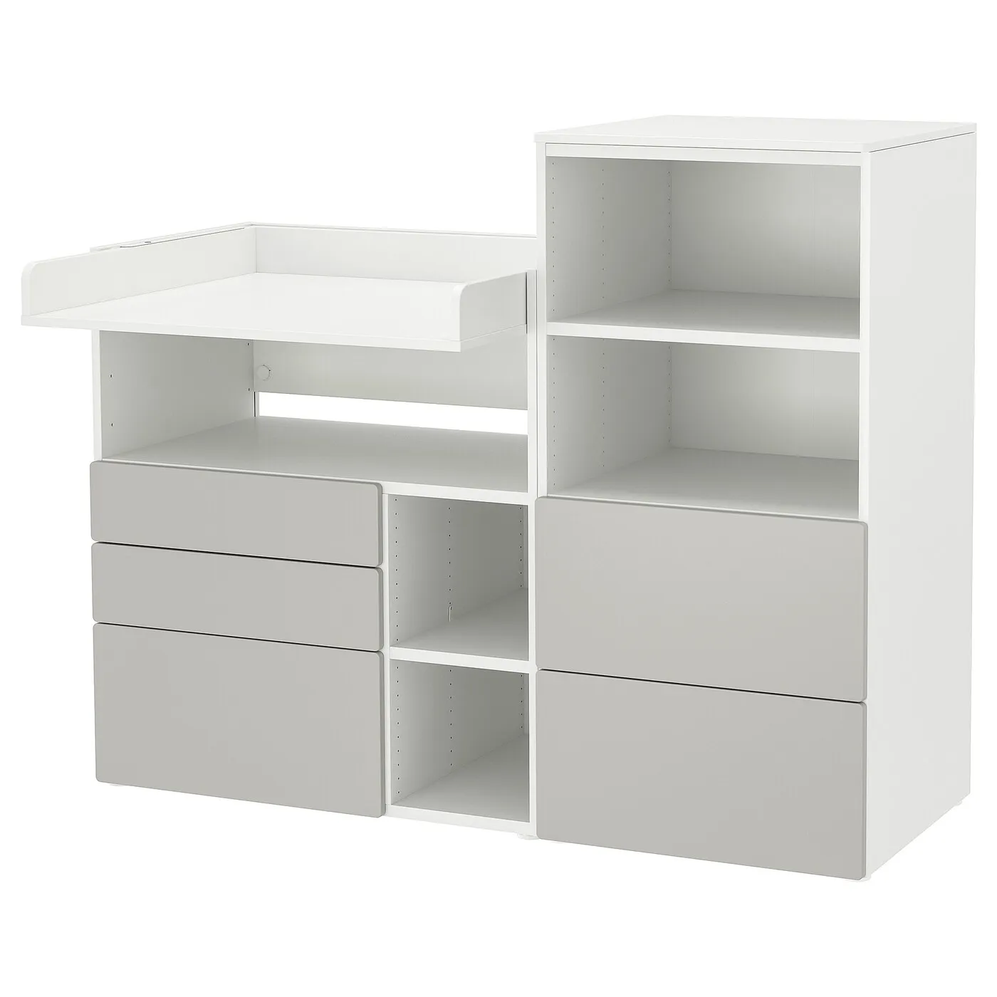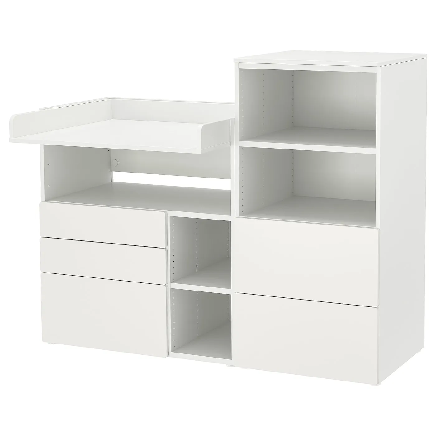 Удобное место для хранения подгузников, кремов, одежды или игрушек. После того, как ваш ребенок перестанет использовать подгузники, столик легко превратить в письменный, где можно делать уроки или заниматься творчеством.