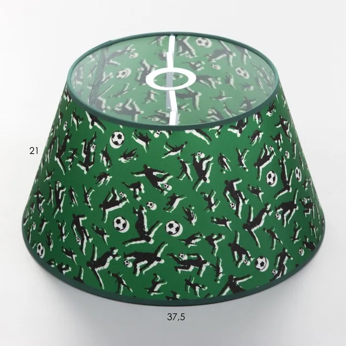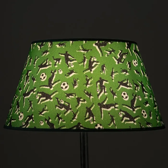 - Спортивный дизайн: абажур выполнен в форме конуса, что делает его стильным элементом декора для любителей футбола.