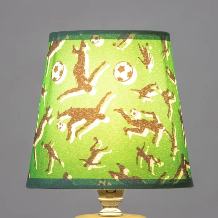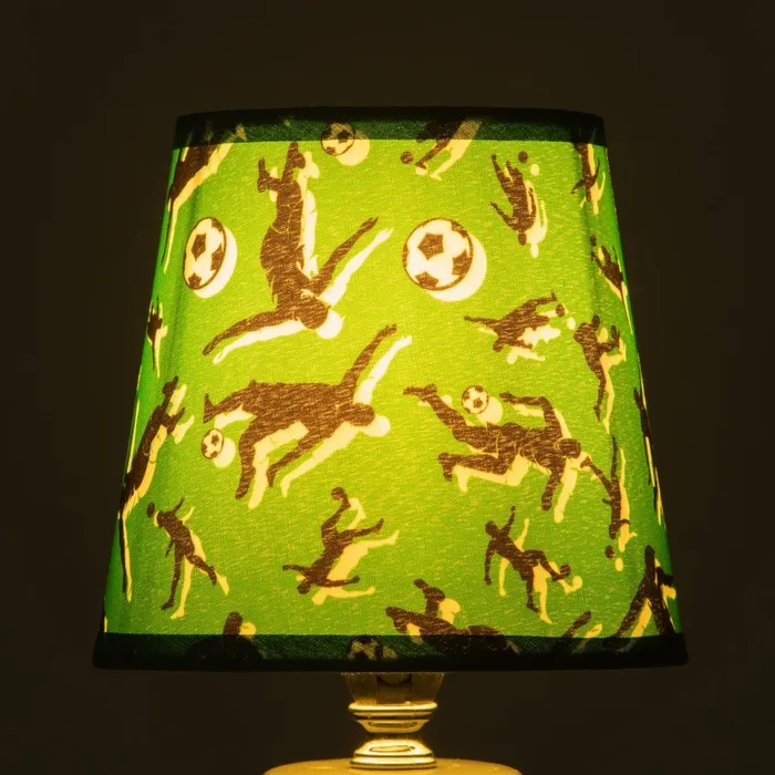 - Спортивный дизайн: абажур выполнен в форме конуса, что делает его стильным элементом декора для любителей футбола.