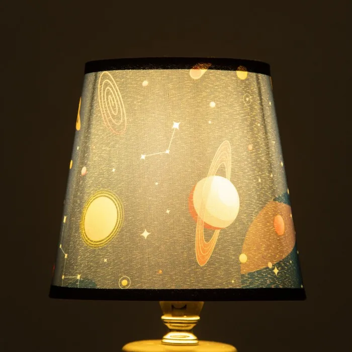 Этот аксессуар наполнит ваш дом ощущением бескрайних просторов и таинственной красоты Вселенной. Принт «Планеты» переносит вас в мир далёких миров, где каждый момент наполнен удивлением и открытиями. Абажур легко адаптируется под любой стиль интерьера, добавляя нотку индивидуальности и креативности. Позвольте этому маленькому произведению стать частью вашего пространства, даря вам уют и вдохновение каждый день!