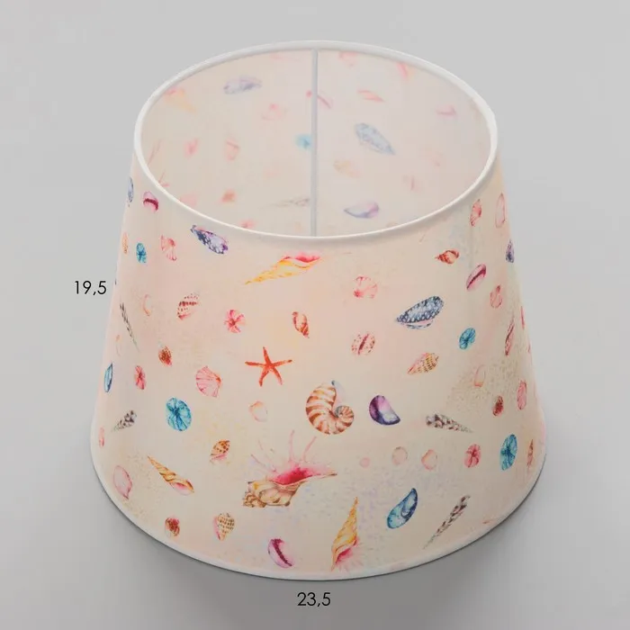 Представляем вашему вниманию универсальный абажур, который наполнит ваш дом светом и уютной атмосферой морского побережья. С изысканным принтом «Ракушки», этот аксессуар привлекает внимание своей игрой разноцветных оттенков, которые создают ощущение лёгкости и свободы. Размеры 24×24×19 см и конусная форма делают его идеальным выбором для различных типов светильников, будь то настольная лампа или торшер.